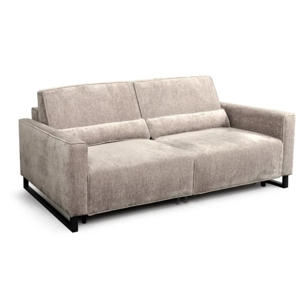 Обивка из велюра не только роскошно выглядит, но еще и практична в эксплуатации, а также имеет отличные показатели износоустойчивости. Высокие опоры из профильной стальной трубы придают дивану особую стилистику, декоративный кант придает изделию законченный вид, помогает сохранить форму и снижает нагрузку на чехол. Поясничные подушки являются дополнительной опорой и служат поддержкой для спины.
