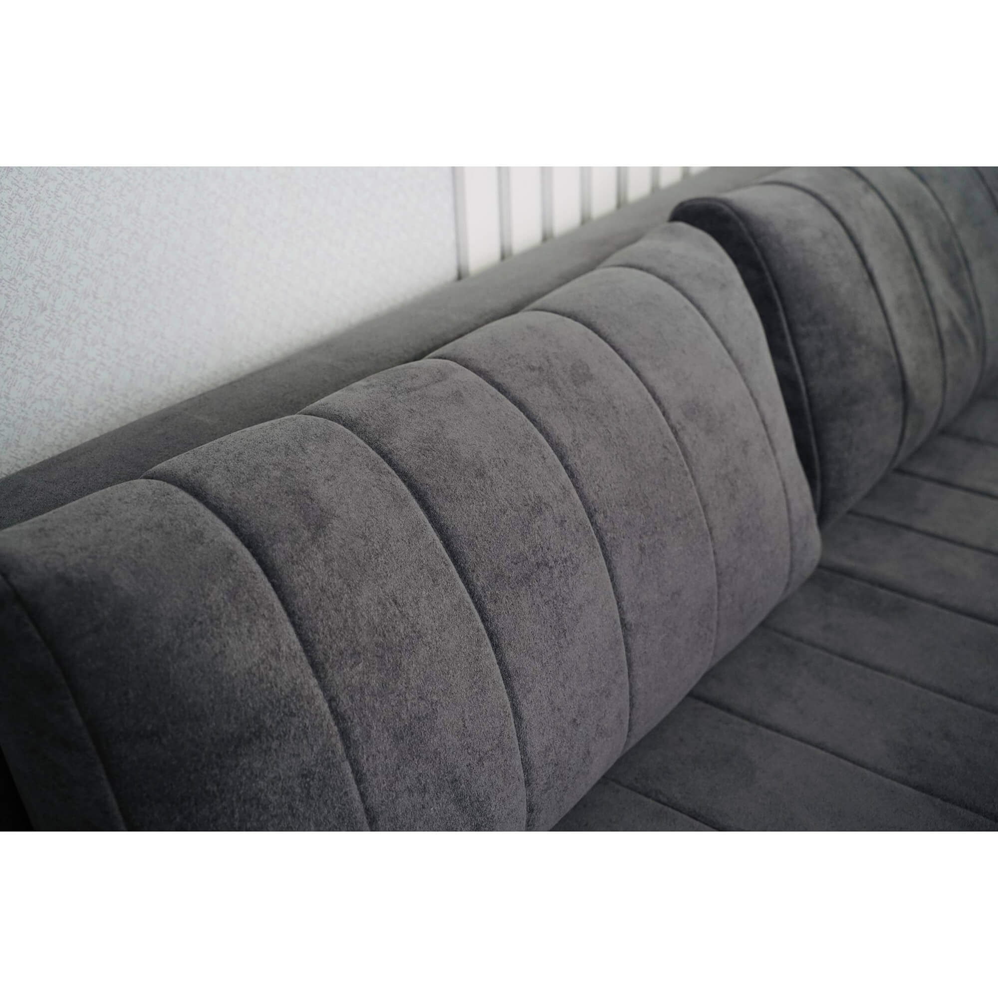 Мы сознательно сделали подлокотники узкими и изящными. Это визуально облегчает модель, делая ее актуальной для современных интерьеров. Плотный велюр с высоким ворсом — это не только тактильное удовольствие, но и проверенная на износостойкость (60 000 циклов) практичность. А съемные чехлы на подушках — это вопрос безупречной гигиены.