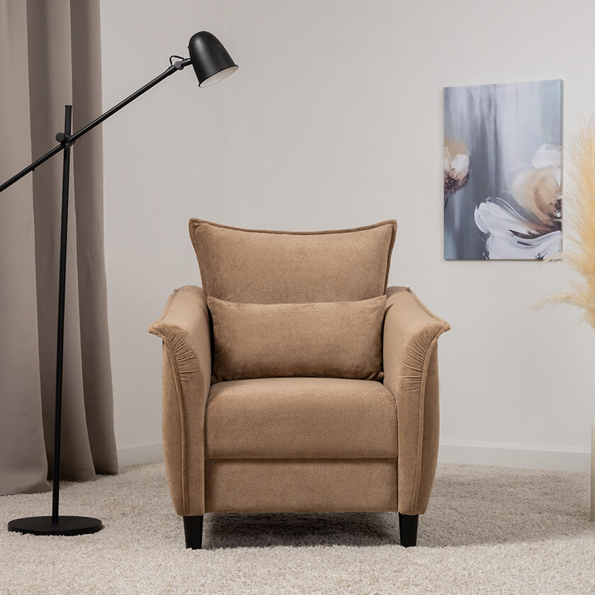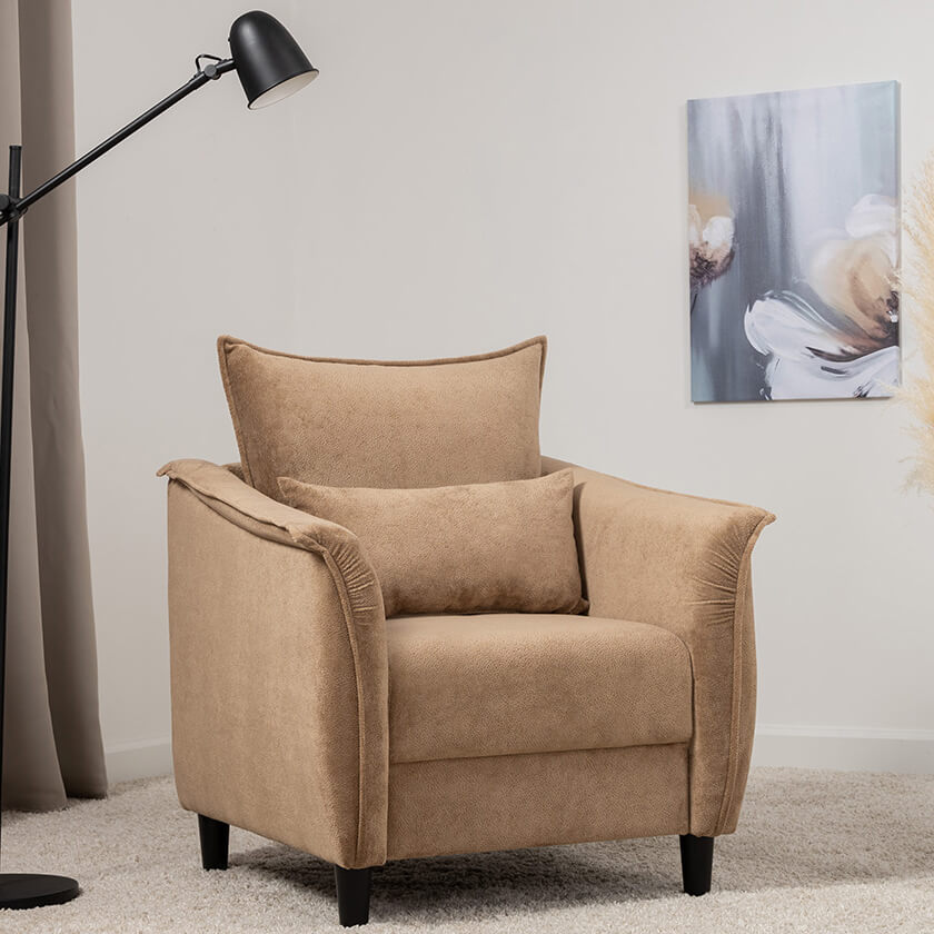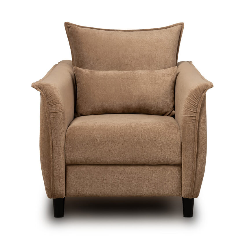 Изогнутые подлокотники в форме лепестков придают коллекции изысканный и элегантный вид, а дополнительные декоративные подушки обеспечат поддержку поясницы и помогут уютно устроиться на кресле.
