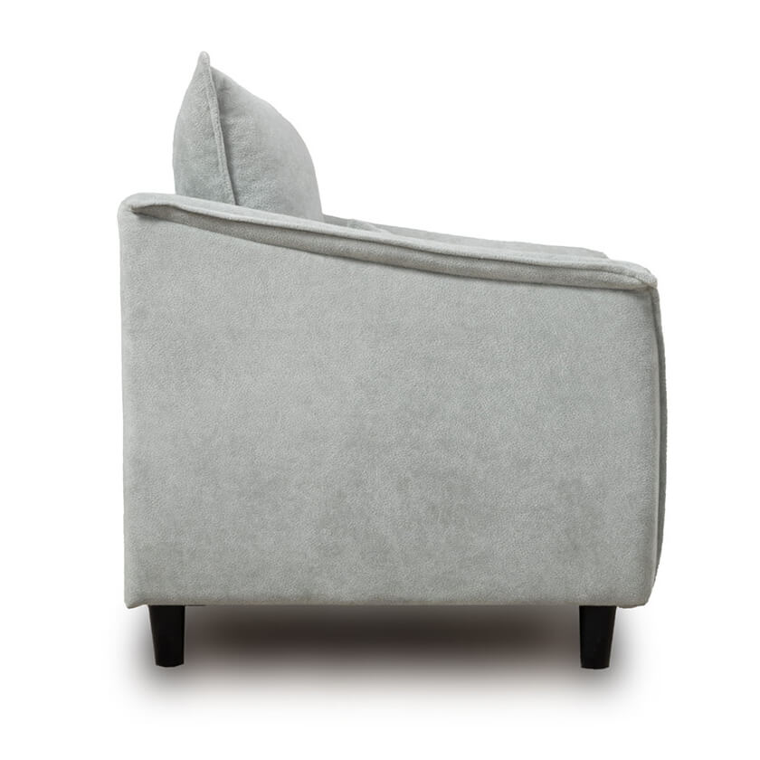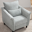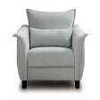 Кресло с приспинной подушкой трапецивидной формы на молнии, по трем сторонам которой проложена отделочная строчка на 1,2 см. По контуру боковин проложен декоративный кант на 1,2 см основной ткани. Кант проходит по центру передней части боковины, а по внутренней верхней части сборка.