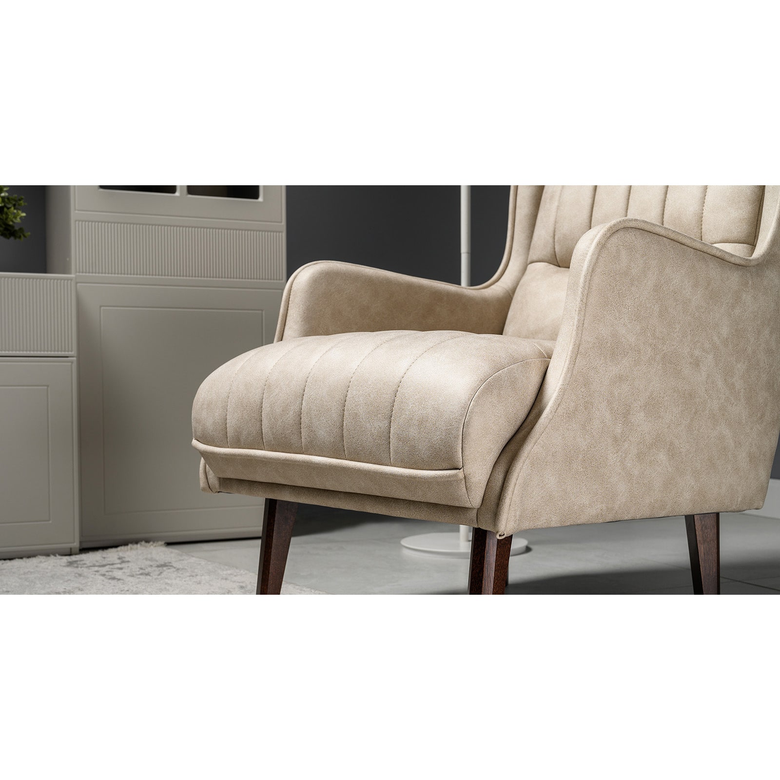 Искусственная замша MUSK — мелкозернистое тиснение, повторяющее природные текстуры, создает в образе мебели ненавязчивый визуальный акцент.