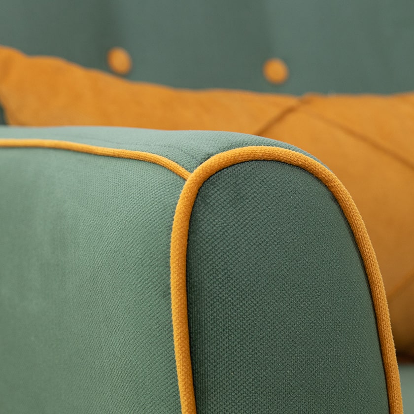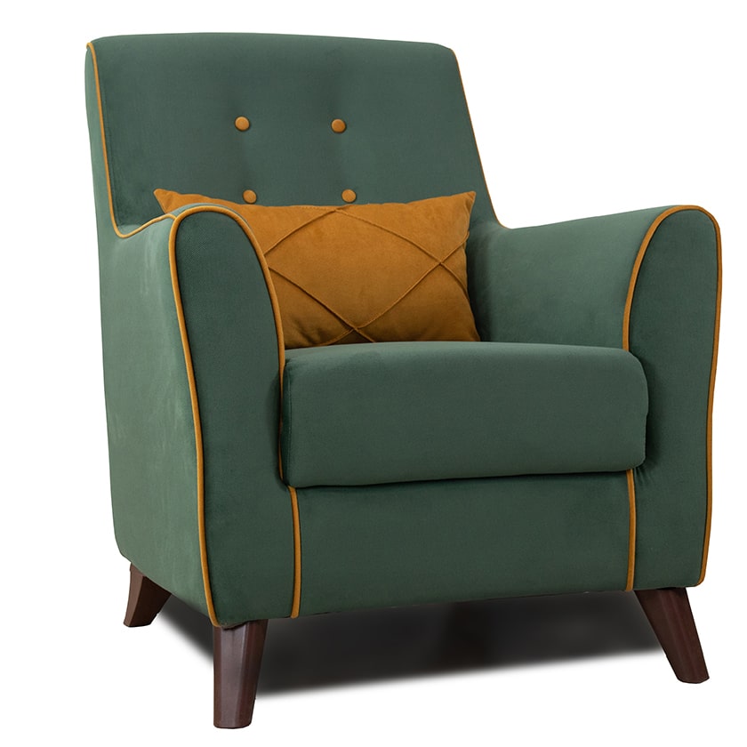 Декор: декоративный кант на кресле, защипы на декоративной подушке, пуговицы на спинке.