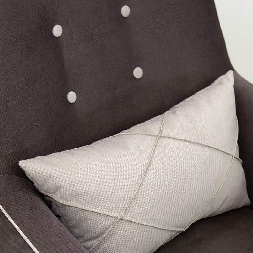 Декор: декоративный кант на кресле, защипы на декоративной подушке, пуговицы на спинке.