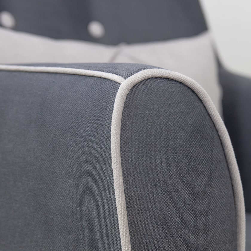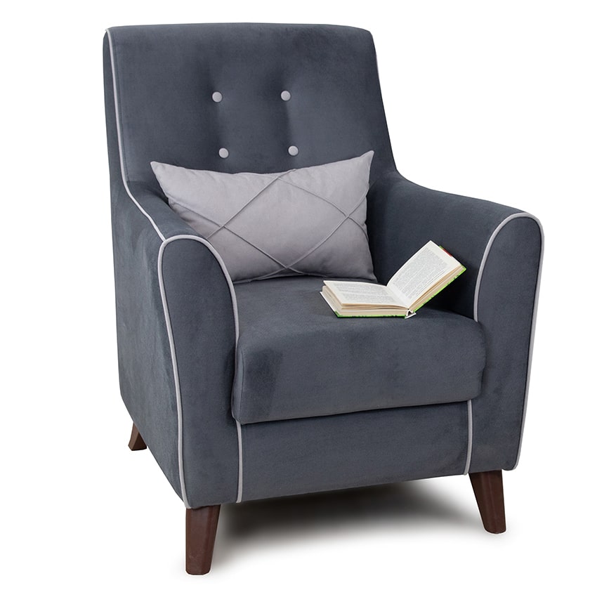 Декор: декоративный кант на кресле, защипы на декоративной подушке, пуговицы на спинке.