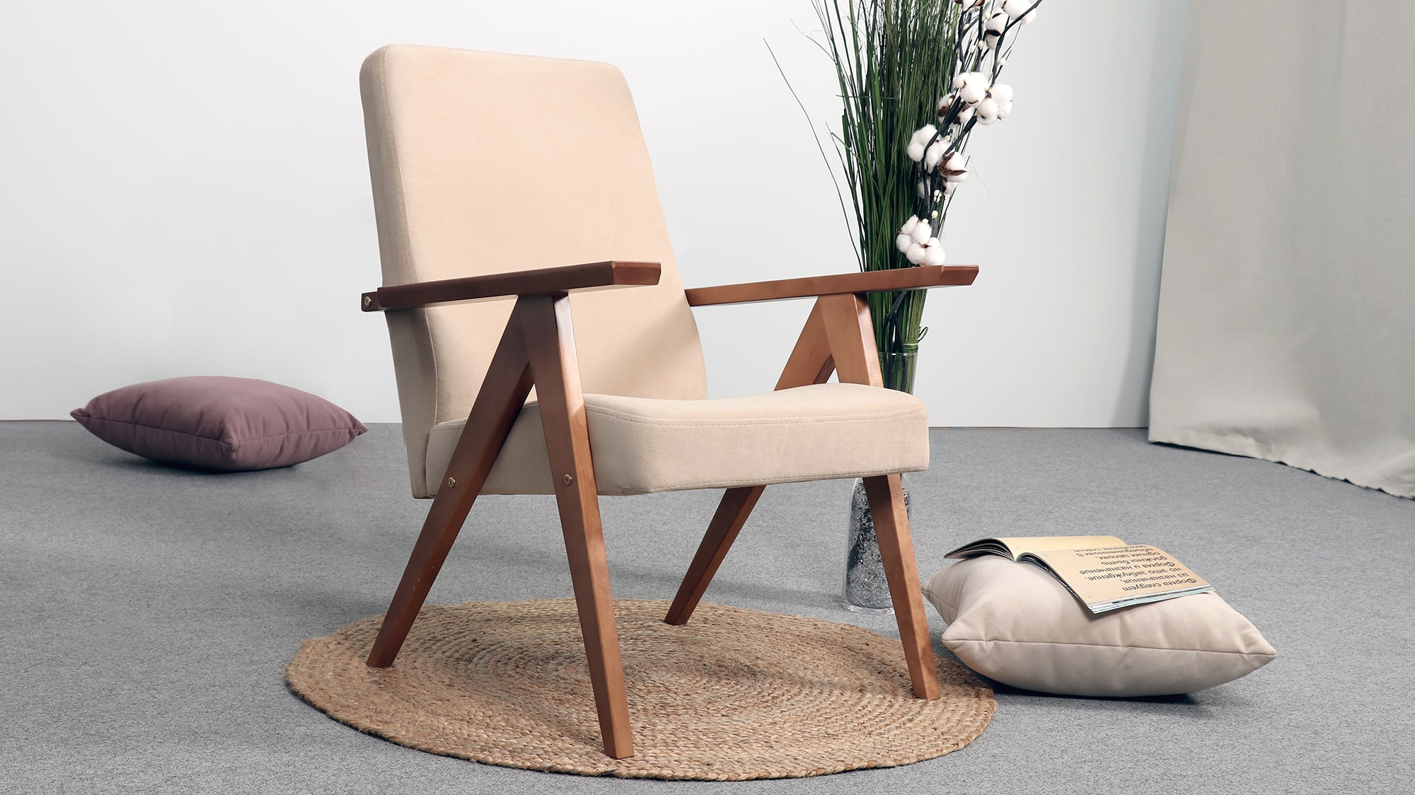 Кресло имеет простой и элегантный силуэт. Оно выполнено в уникальном ретро дизайне и доступно в нескольких цветовых вариантах, что позволяет выбрать наиболее подходящее для вашего дома.