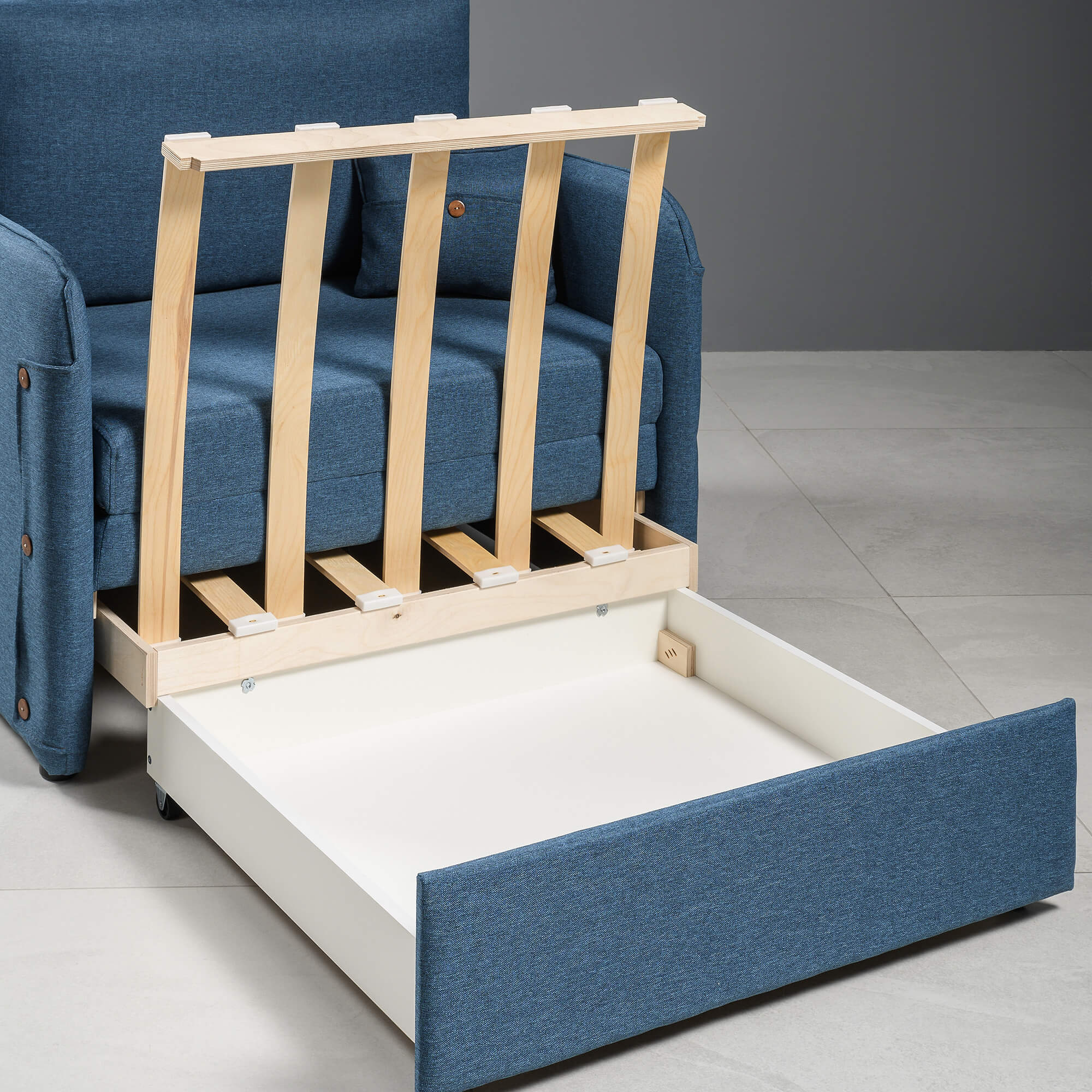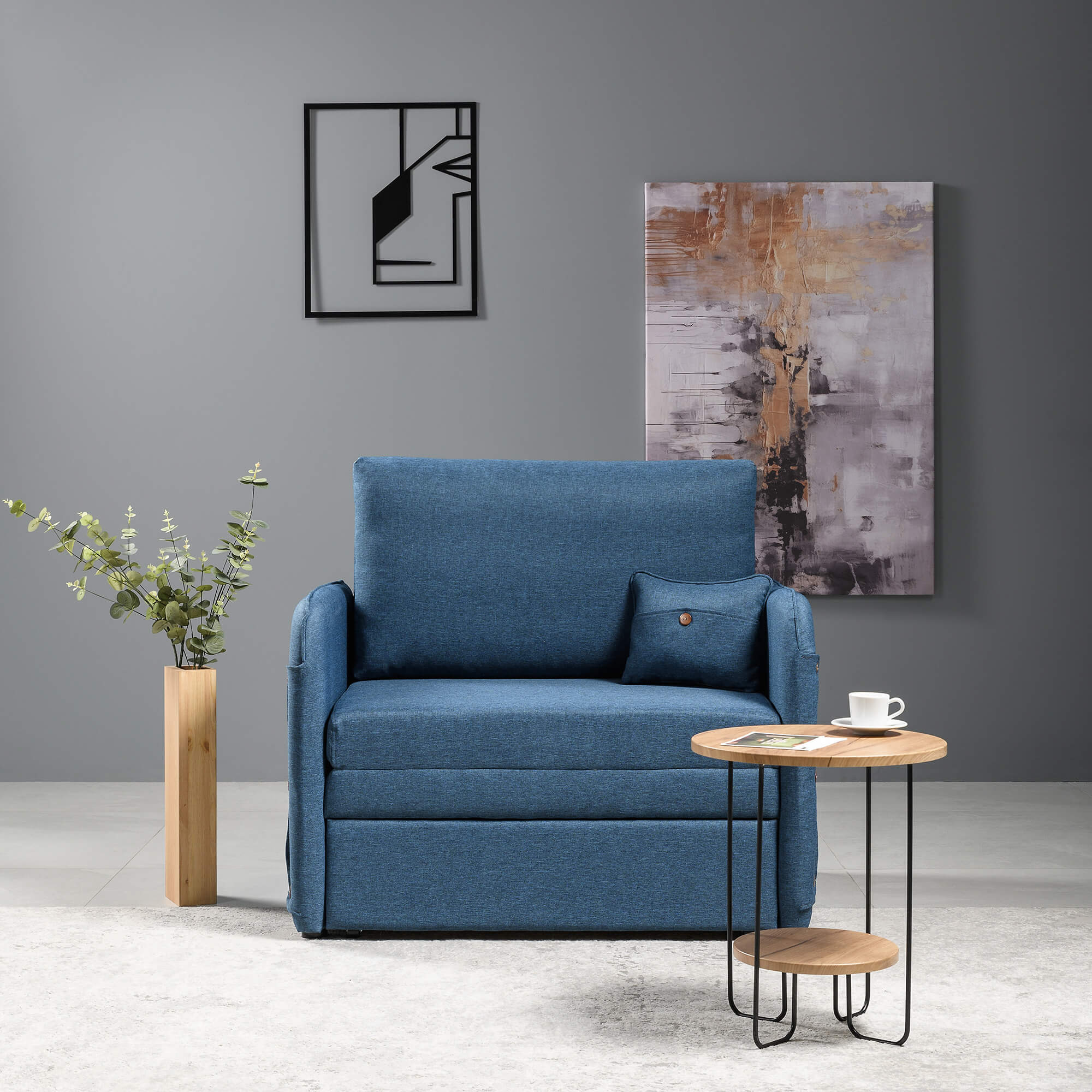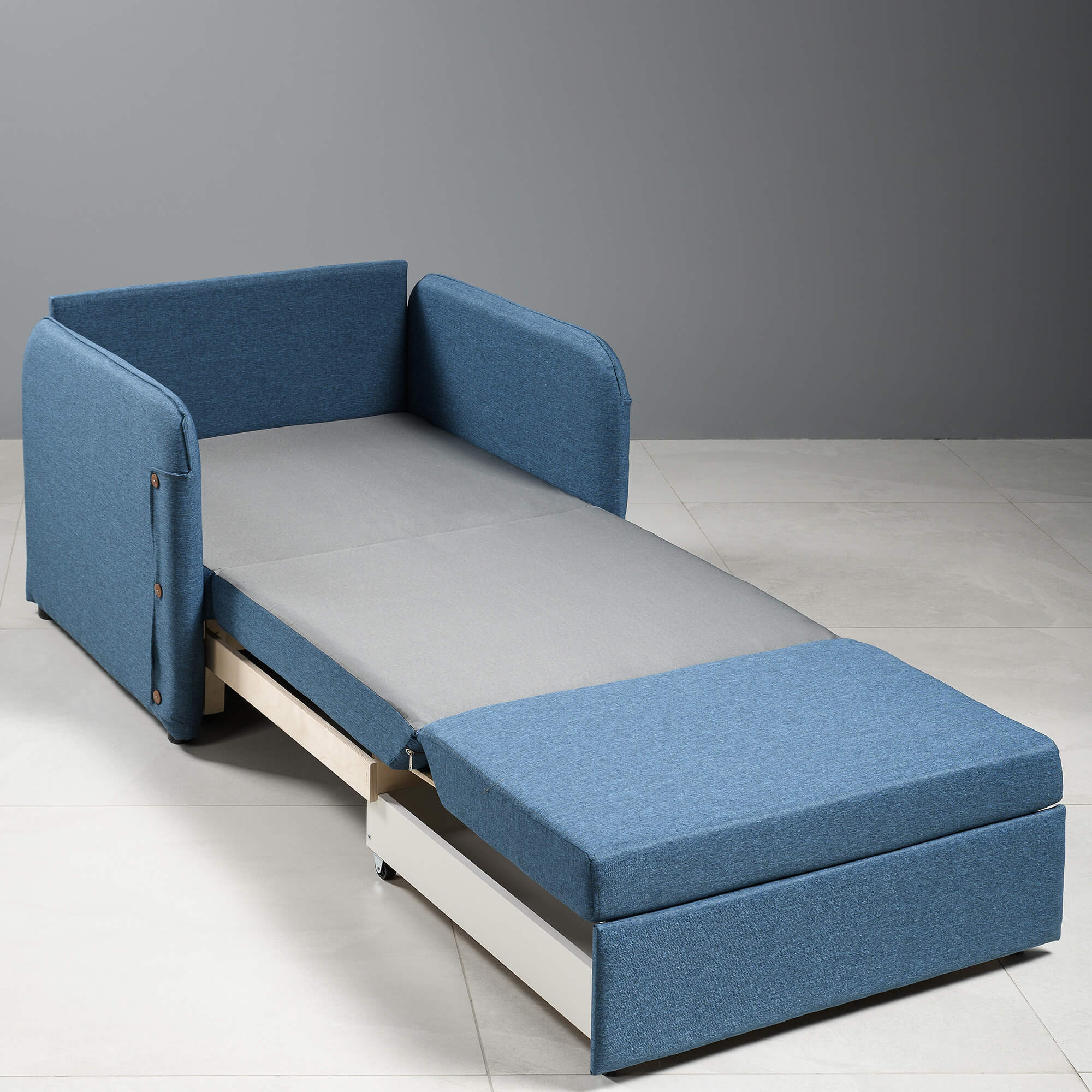 Подушки со съемным чехлом обеспечат уровень комфорта, а рогожка, из которого выполнена обивка, сохранит первоначальный вид и цвет на года. Прочные механизмы превращения интерьерного кресла в кровать обеспечат легкую трансформацию. Спинка кресла с подлокотниками выполнена в основной ткани это моментальное зонирование пространства.