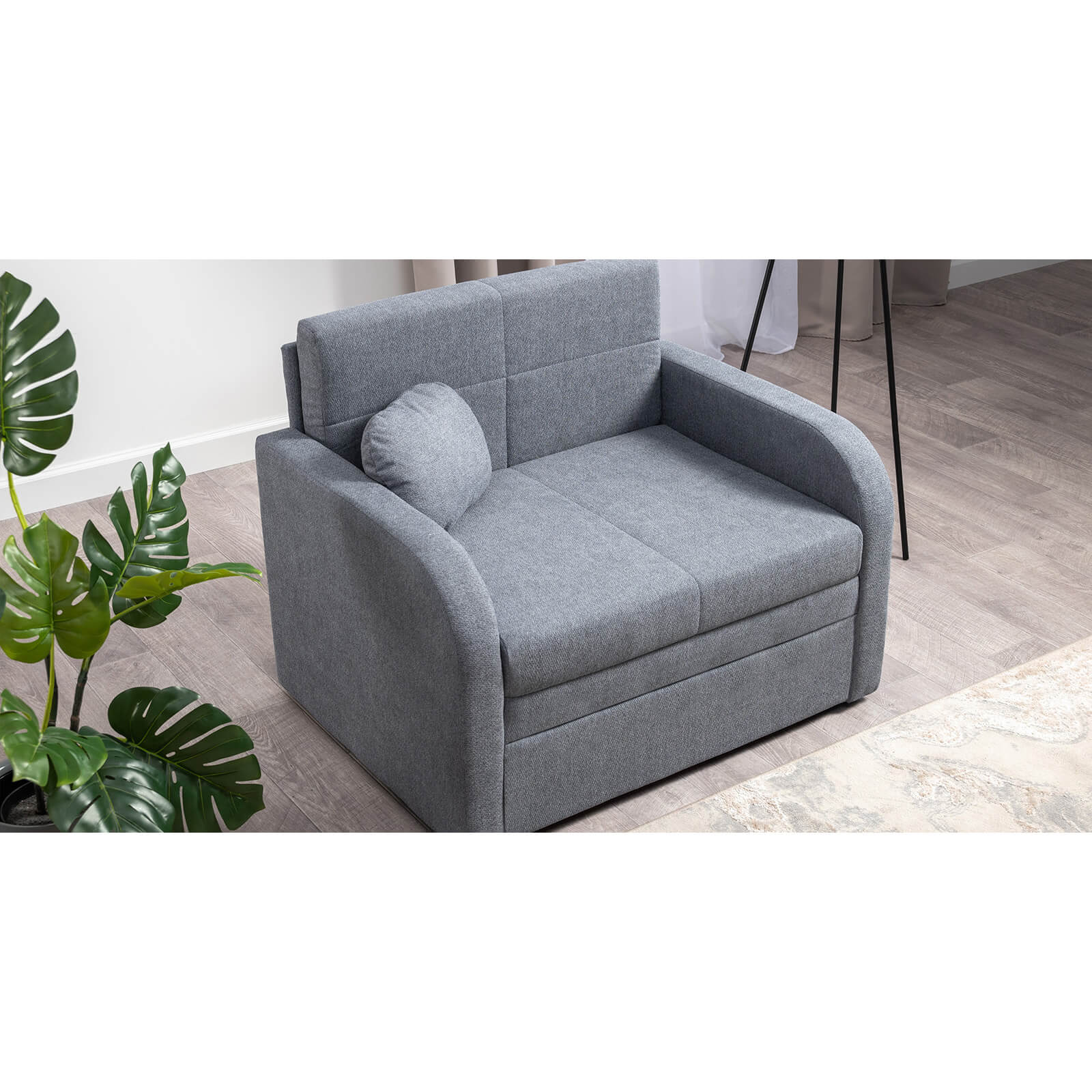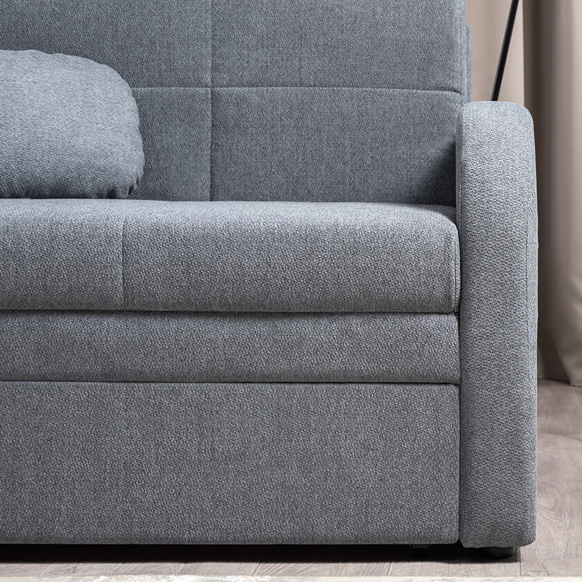 Коллекция выполнена в современном минималистичном стиле с мягкой обивкой из износостойкой ткани и декоративной стежкой, подчеркивающей геометрию форм. Механизм трансформации обеспечивает дополнительное спальное место, делая мебель не только эстетичной, но и максимально функциональной для небольших пространств.