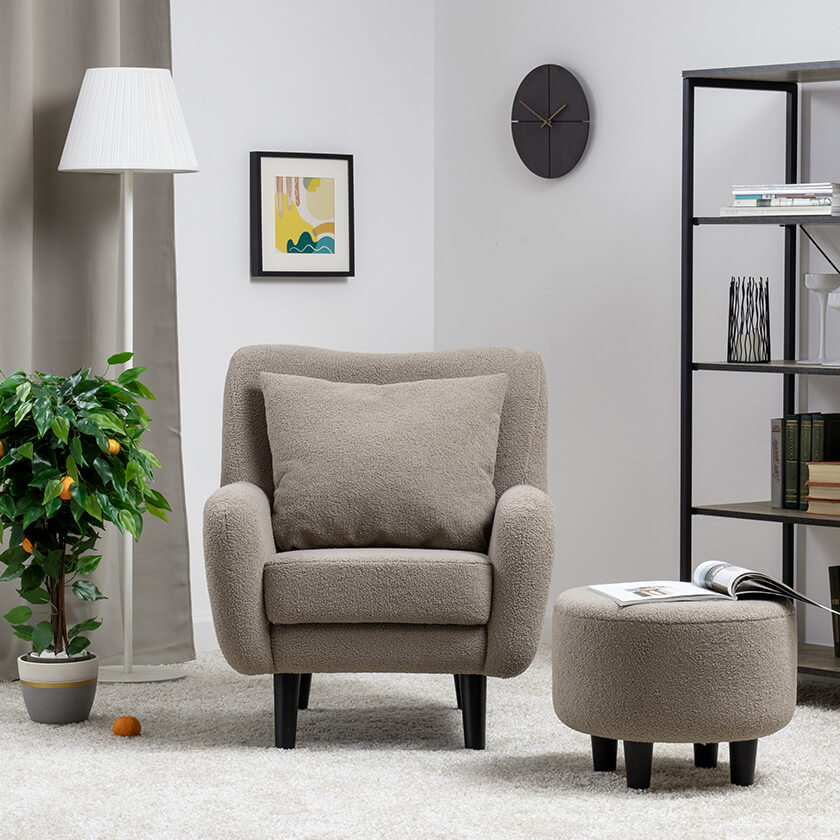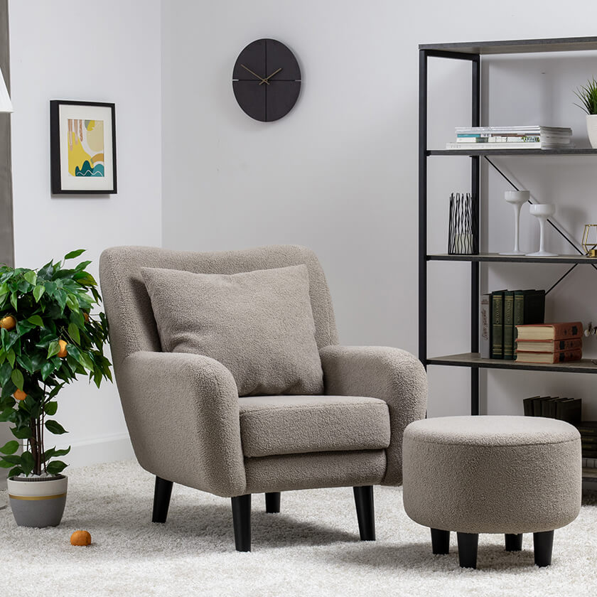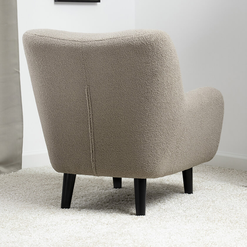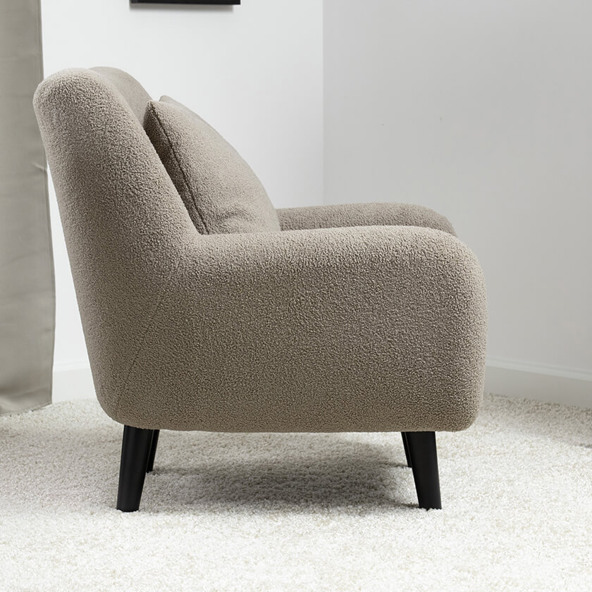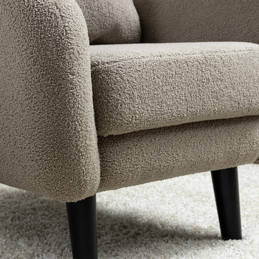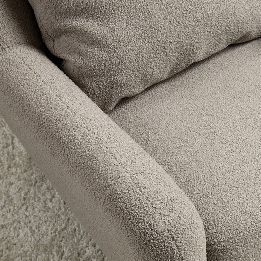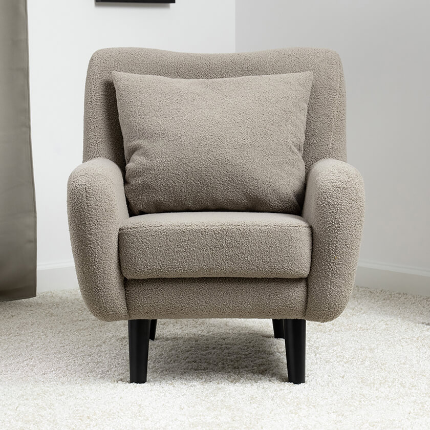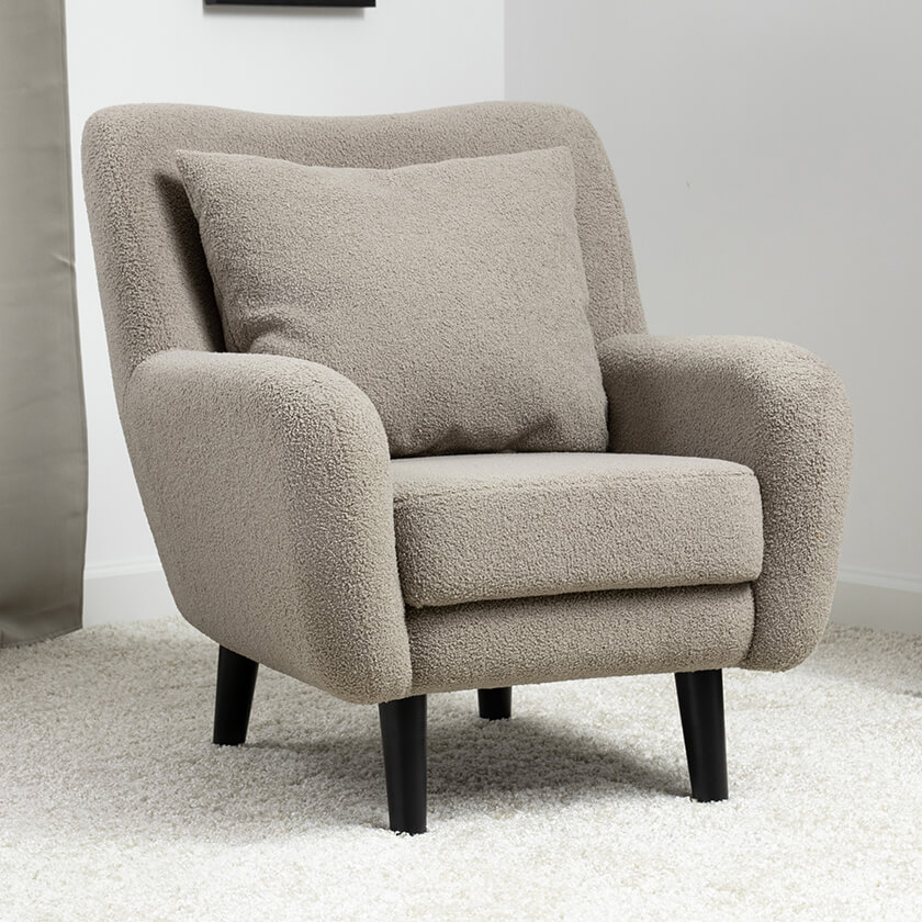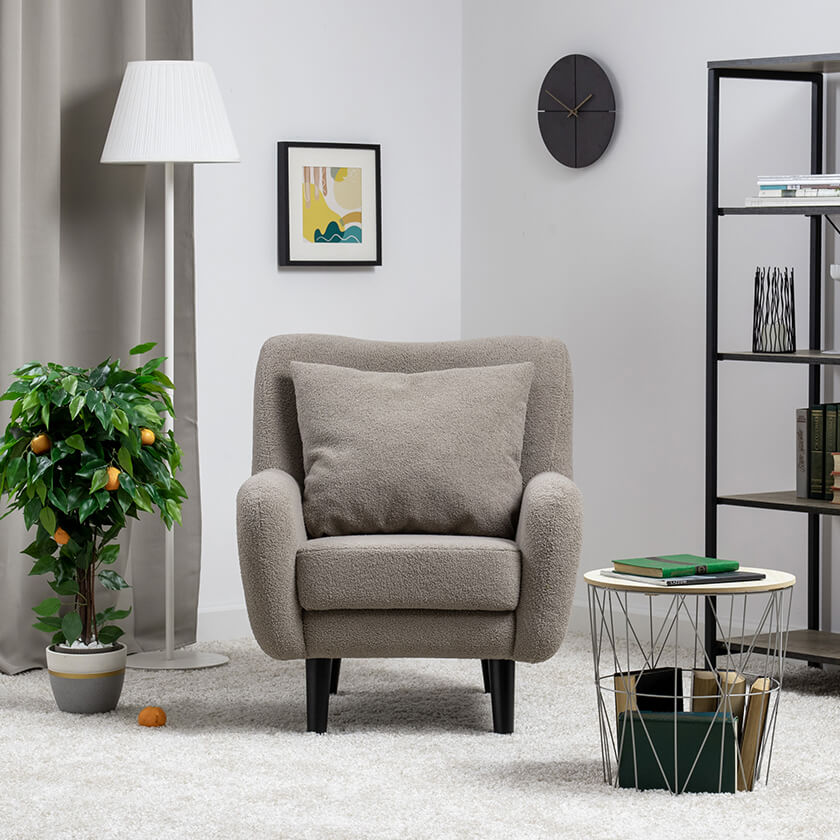Кресло Шон станет вашим любимым местом для отдыха. Мягкое кресло с удобной спинкой даст вам расслабиться и отдохнуть. Благодаря небольшим размерам кресло подходит для многих современных квартир-студий или небольших комнат. Ткань букле делает кресло особенно уютным и мягким. Приспинная подушка в цвете кресла.