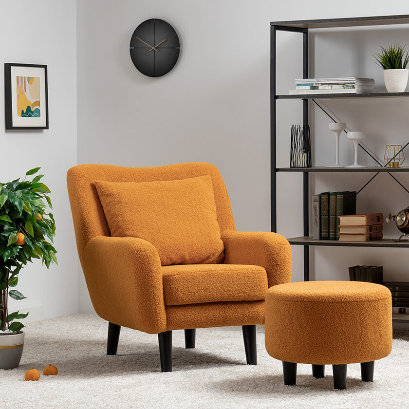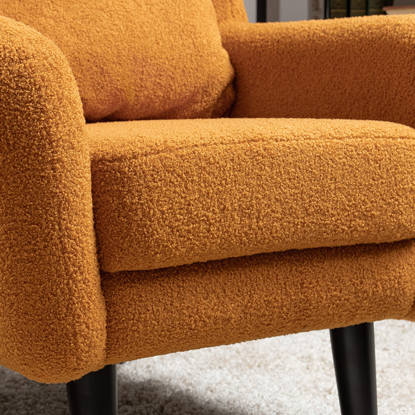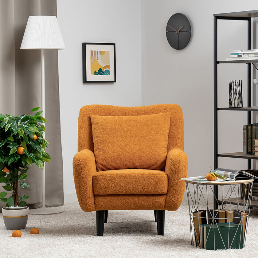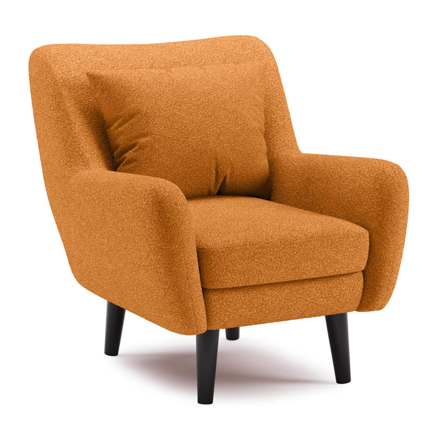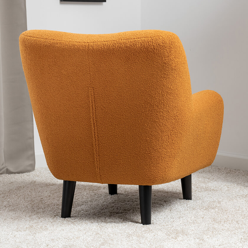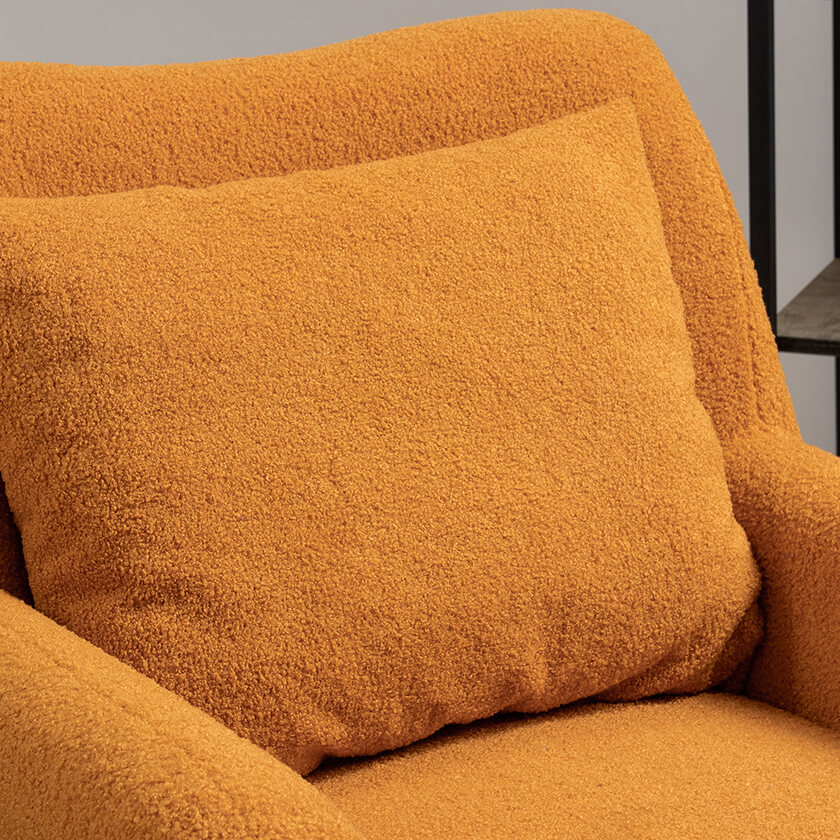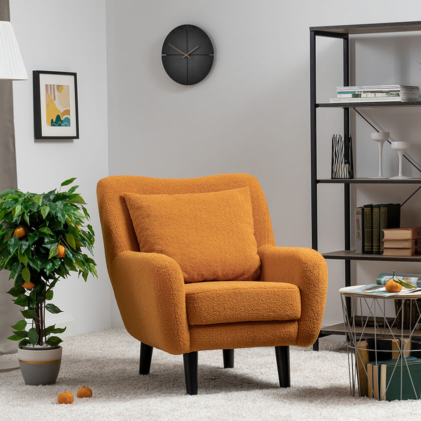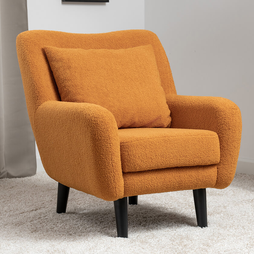 Кресло Шон станет вашим любимым местом для отдыха. Мягкое кресло с удобной спинкой даст вам расслабиться и отдохнуть. Благодаря небольшим размерам кресло подходит для многих современных квартир-студий или небольших комнат. Ткань букле делает кресло особенно уютным и мягким. Приспинная подушка в цвете кресла.