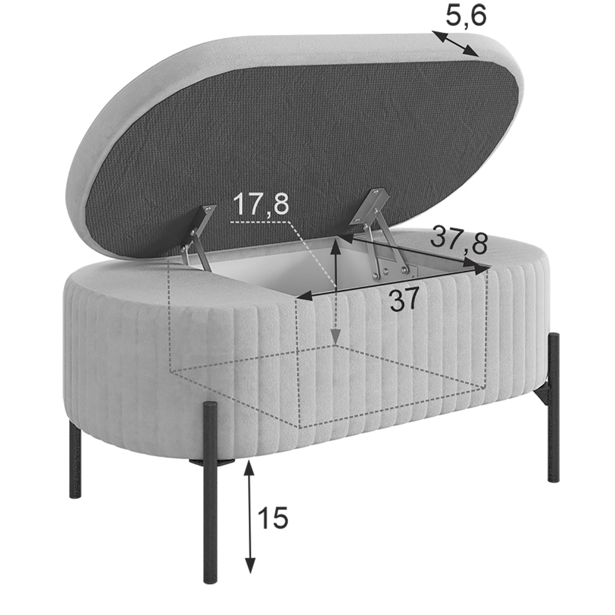 Внутри пуфа находится вместительное пространство для хранения, где вы можете разместить различные предметы, например, книги или косметику. Это делает пуф "Винни" не только удобным местом для отдыха, но и практичным элементом интерьера.
