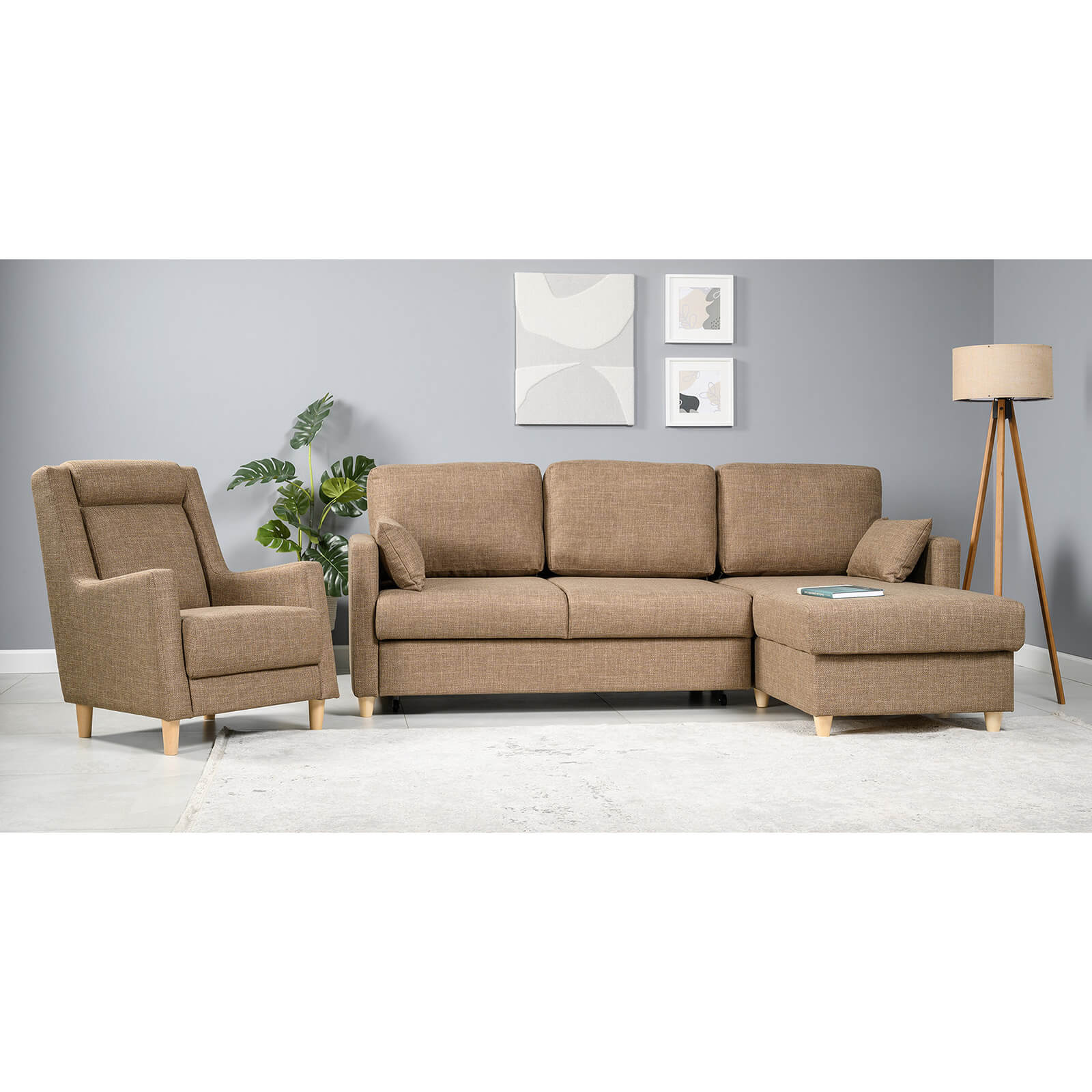 Комфорт: глубокая мягкая посадка дивана, удобные декоративные подушки, приятная на ощупь рогожка.