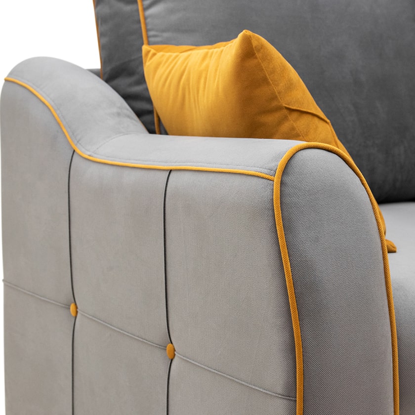 Декор: декоративный кант, пуговицы, отстрочка, утяжка на подушке и подлокотниках.