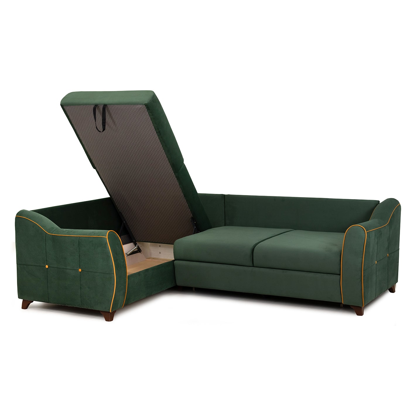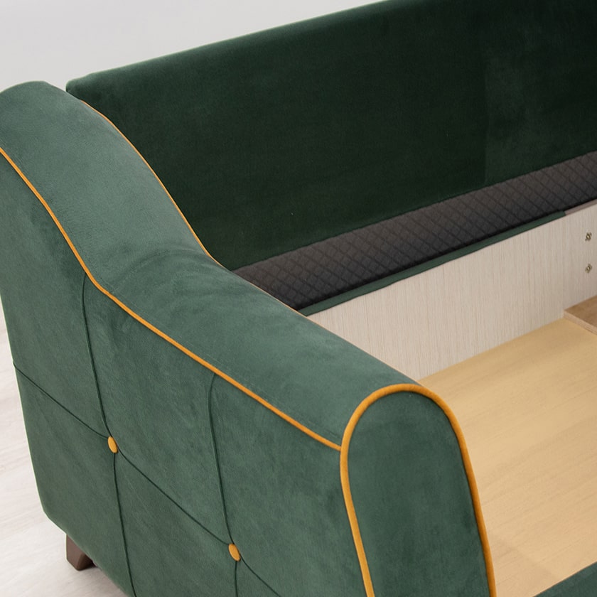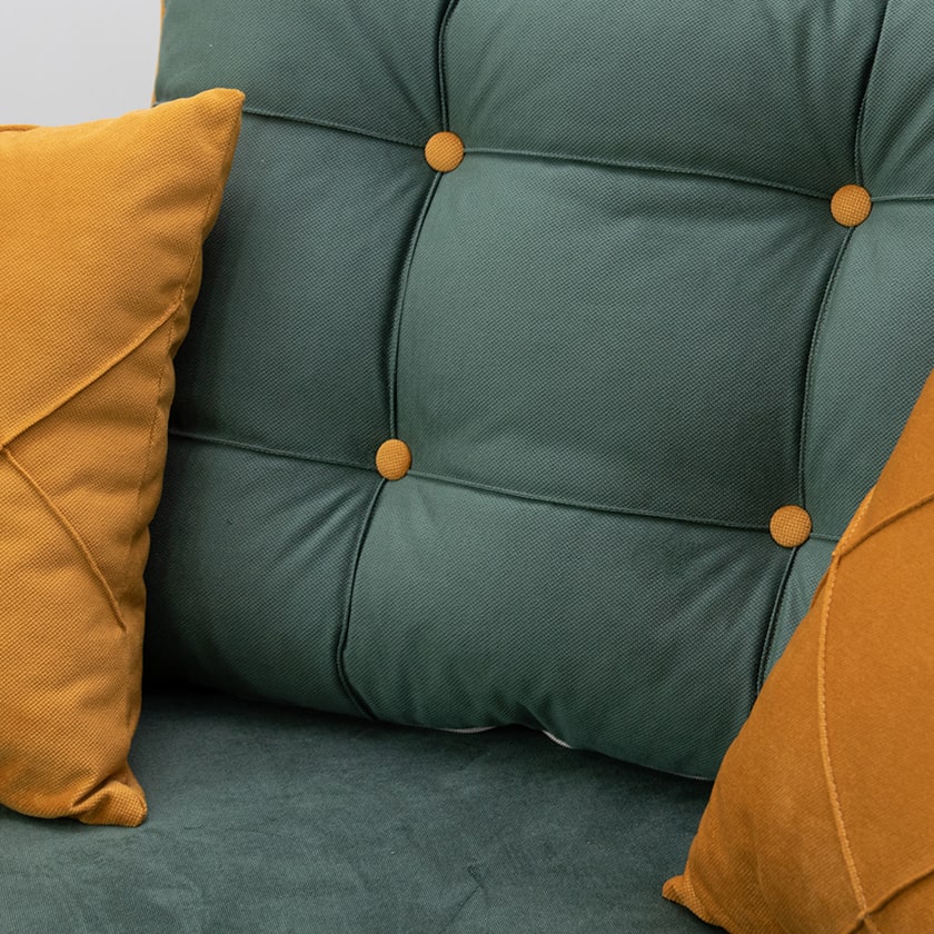 Декор: декоративный кант, пуговицы, отстрочка, утяжка на подушке и подлокотниках.