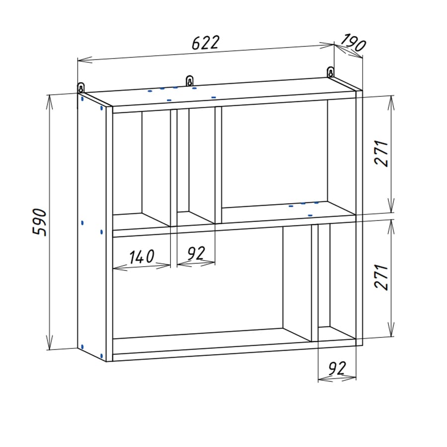 Компактные размеры полки (высота 59 см, ширина 62,2 см, глубина 19 см) позволяют разместить ее в любом уголке вашего дома, не занимая много места. Открытая конструкция полки обеспечивает легкий доступ к предметам, которые на ней размещены.