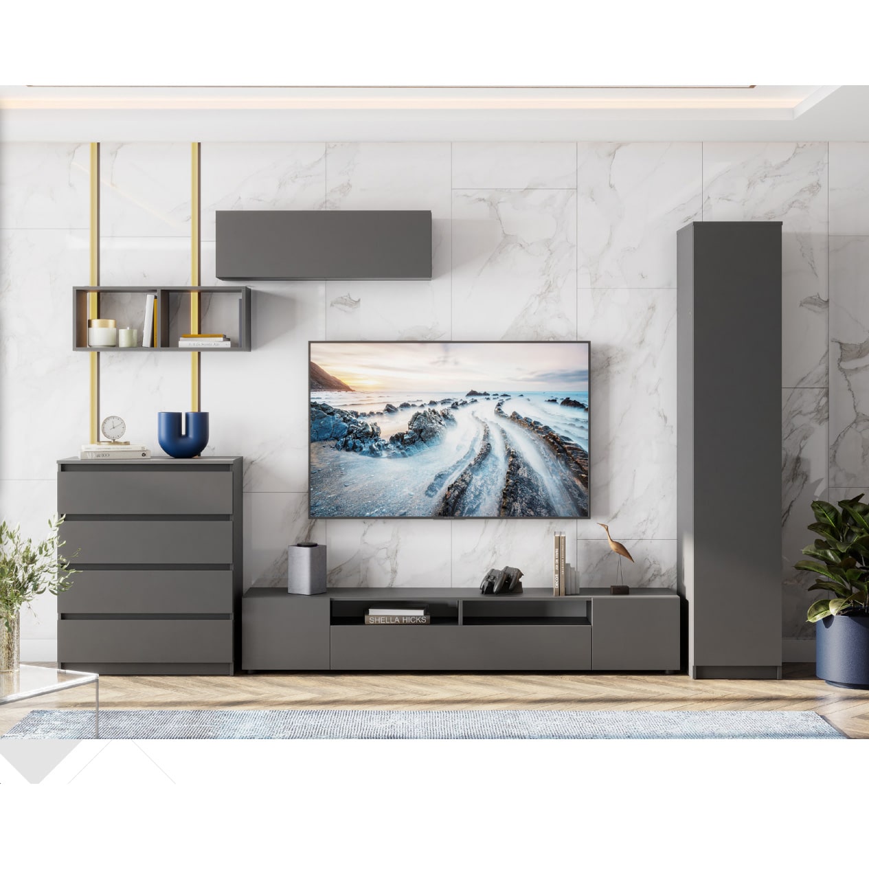 Графит — это глубокий и насыщенный цвет, самостоятельный, идеально смотрится в монохромном исполнении. Отлично впишется в любые стили интерьера: «Минимализм», «Современный» и всем полюбившийся «Лофт».