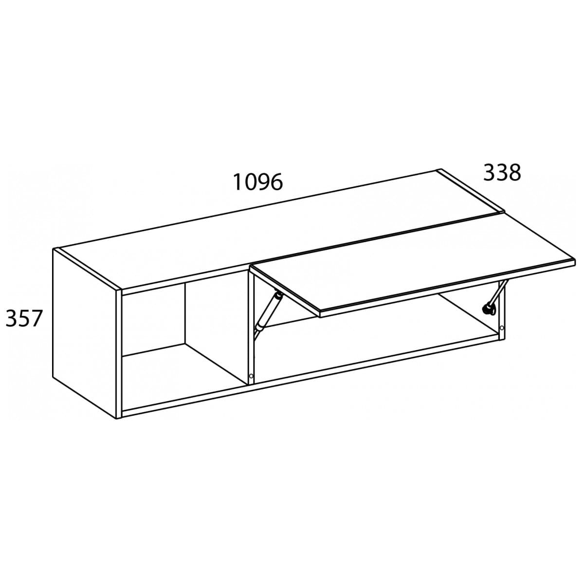 Полка навесная JAGGER 1DN – яркое и динамичное дополнение интерьера гостиной. Полка навесная 1DN имеет прямую конструкцию. Она представляет одно отделение за глухой дверью (1D), одну открытую нишу слева (N). Фасад открывается вверх (горизонтально) с помощью подъёмного механизма.
