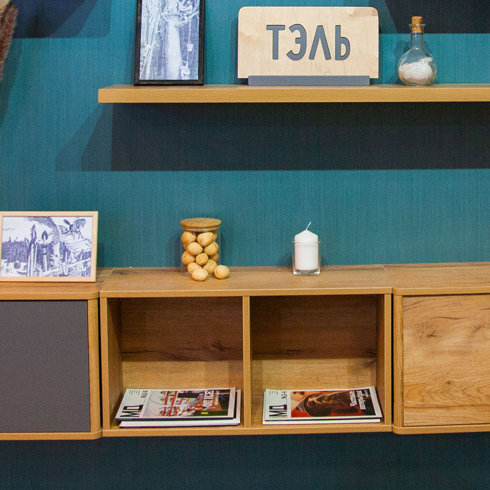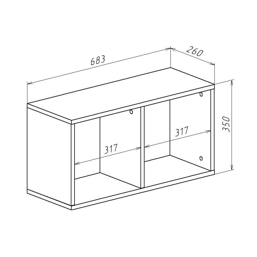 Полка крепится к стене. Вешается как горизонтально, так и вертикально. Материал: ЛДСП 16 мм. Фурнитура: навесы.