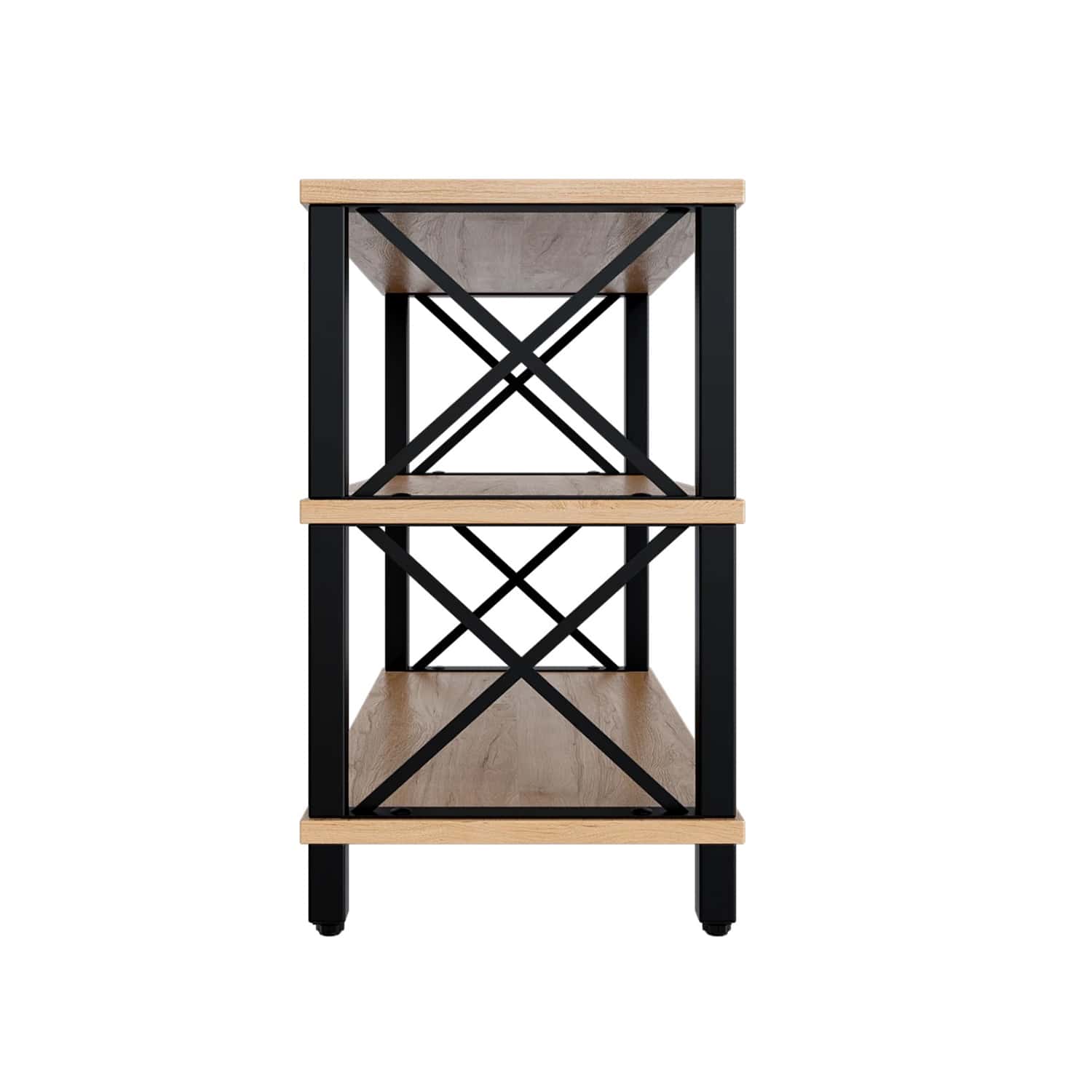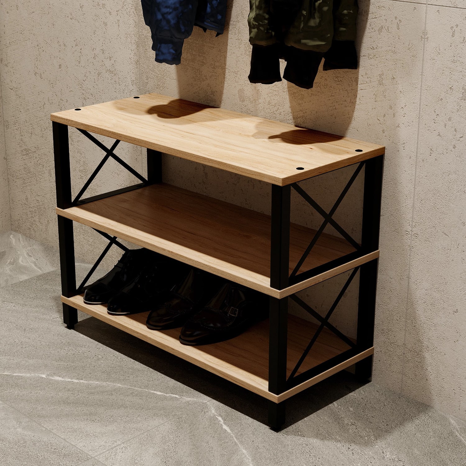 Обувница “Бонн” - это идеальное решение для организации хранения обуви в прихожей. Она выполнена из металлических рамок, между которыми расположены полки из ЛДСП в оттенке "Натуральный светлый дуб", что придает ей особый шарм и делает идеальным дополнением для интерьера в стиле лофт.
