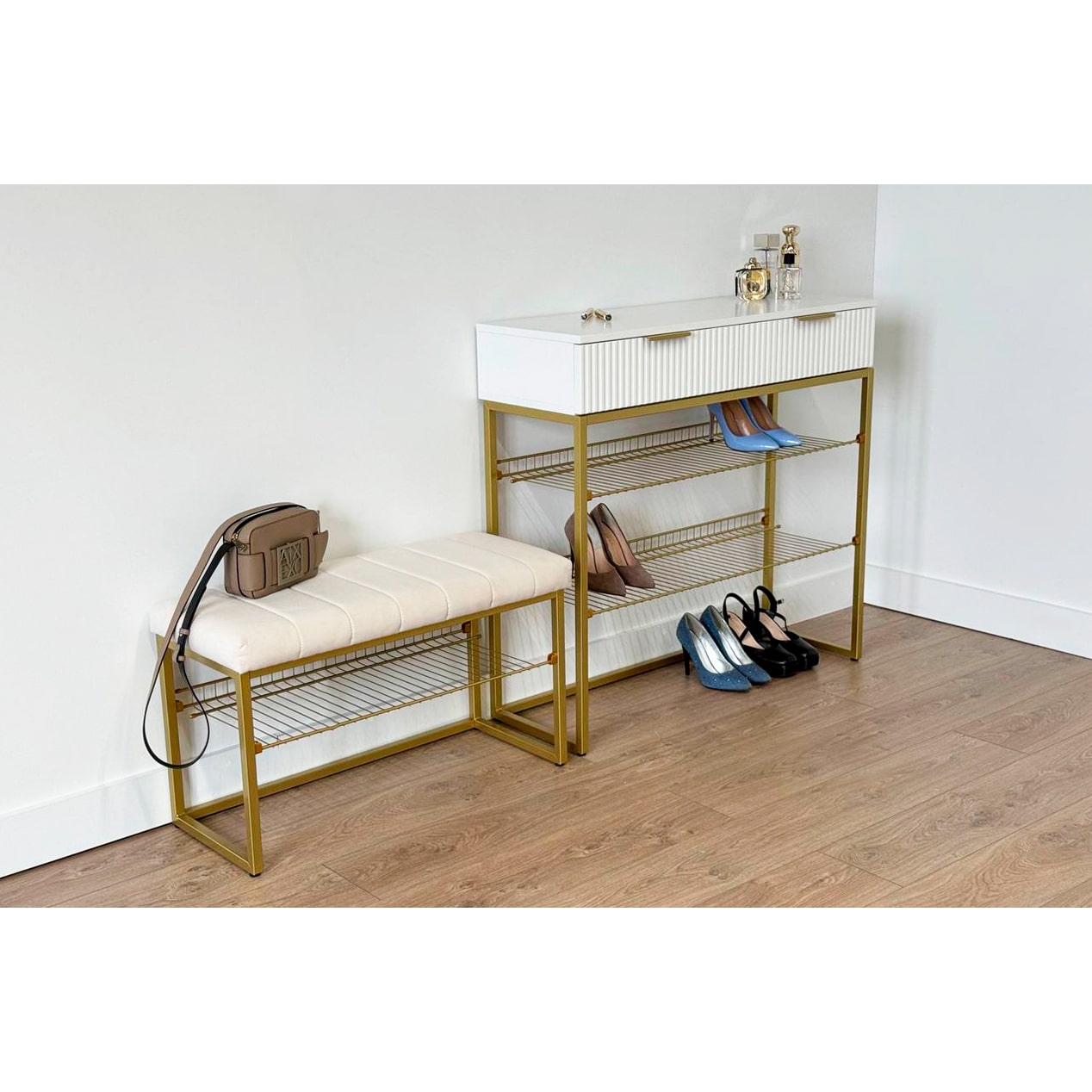 Обувница Классная 2 золото/крем (велюр)