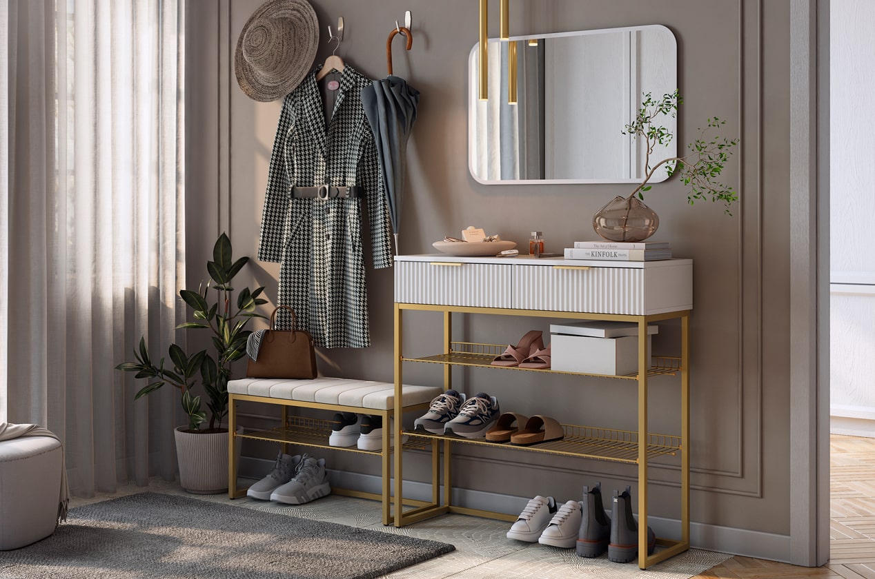 Каркас обувницы выполнен из высококачественных материалов, обеспечивающих долговечность изделия. Благодаря своему стильному дизайну и компактным размерам, эта обувница прекрасно впишется в любой интерьер и поможет поддерживать порядок в прихожей.