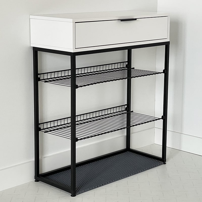 Обувница Краш прекрасно сочетает в себе стиль и функциональность. Её дизайн в стиле лофт идеально подходит для современных интерьеров. Выдвижной ящик с шариковыми направляющими обеспечивает бесшумное и плавное открывание, предоставляя удобный доступ к вашим аксессуарам и мелочам. Регулируемые опоры и специальный ЭВА коврик обеспечивают дополнительный комфорт и защиту.