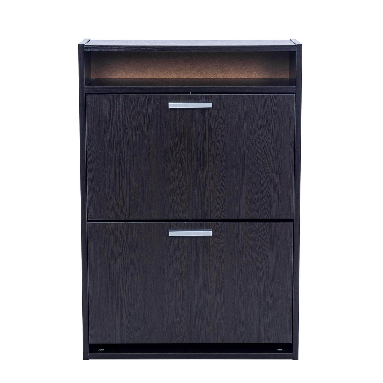 Обувница оснащена двумя отделениями для обуви, что позволяет хранить до 6 пар одновременно. Откидные двери обеспечивают легкий доступ к обуви, а также позволяют экономить пространство в помещении.
