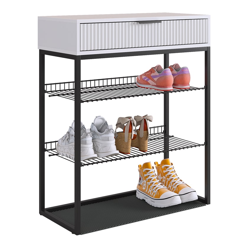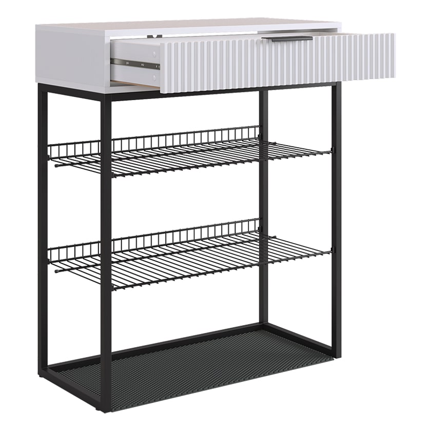 Обувница Вельвет прекрасно сочетает в себе стиль и функциональность. Её дизайн в стиле лофт идеально подходит для современных интерьеров. Выдвижной ящик с шариковыми направляющими обеспечивает бесшумное и плавное открывание, предоставляя удобный доступ к вашим аксессуарам и мелочам. Регулируемые опоры и специальный коврик обеспечивают дополнительный комфорт и защиту.