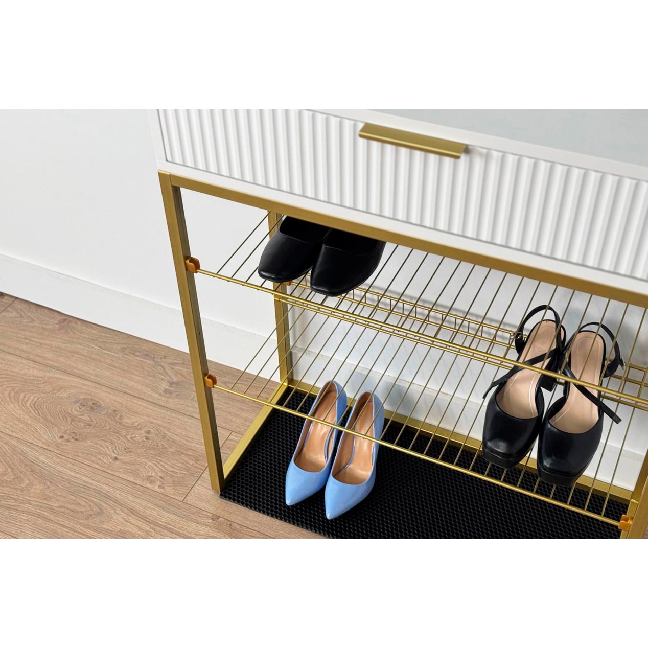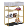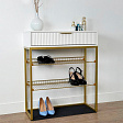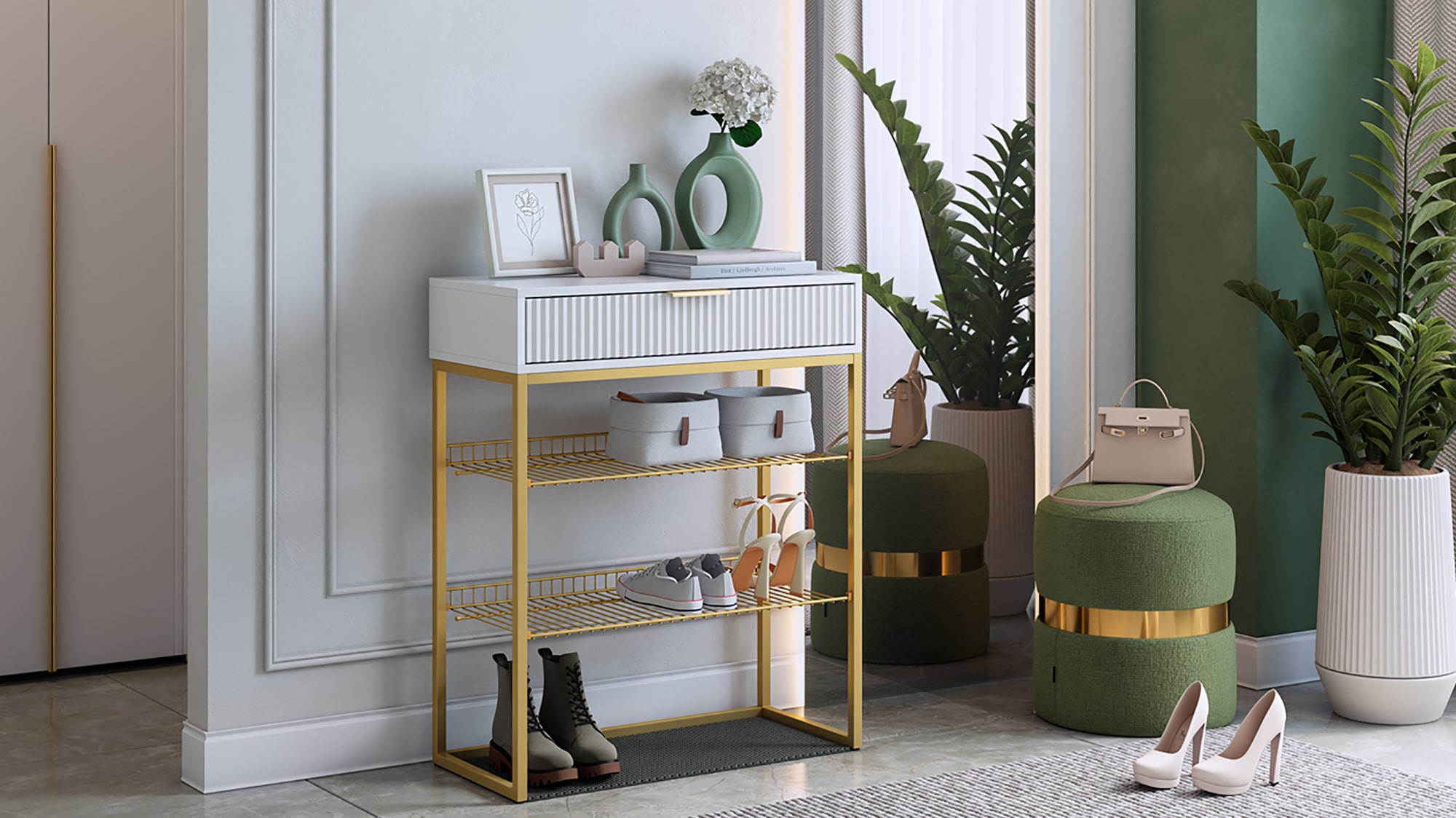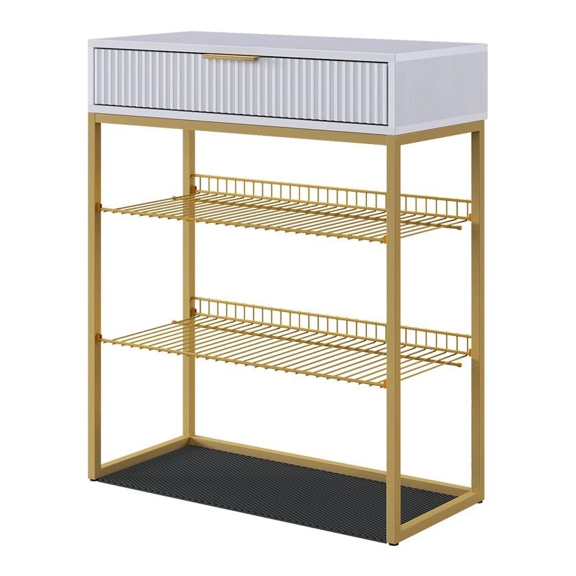 Обувница Вельвет прекрасно сочетает в себе стиль и функциональность. Её дизайн в стиле лофт идеально подходит для современных интерьеров. Выдвижной ящик с шариковыми направляющими обеспечивает бесшумное и плавное открывание, предоставляя удобный доступ к вашим аксессуарам и мелочам. Регулируемые опоры и специальный коврик обеспечивают дополнительный комфорт и защиту.