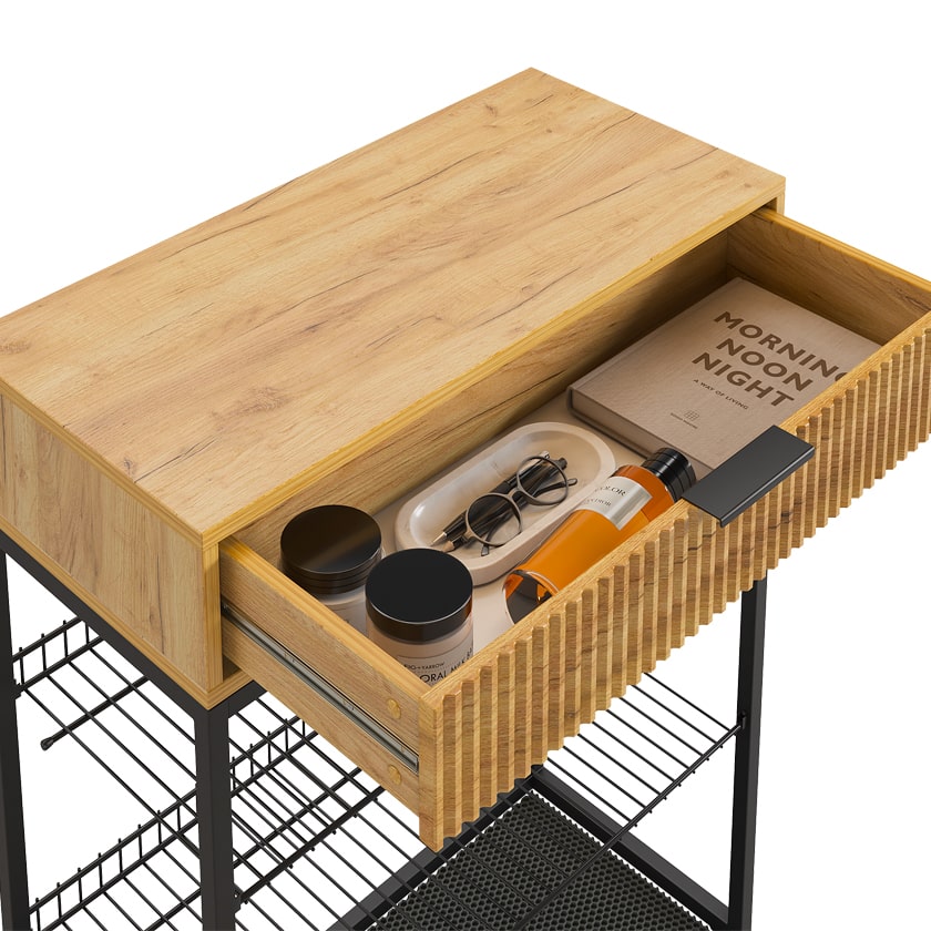 Обувница Вельвет прекрасно сочетает в себе стиль и функциональность. Её дизайн в стиле лофт идеально подходит для современных интерьеров. Выдвижной ящик с шариковыми направляющими обеспечивает бесшумное и плавное открывание, предоставляя удобный доступ к вашим аксессуарам и мелочам. Регулируемые опоры и специальный коврик обеспечивают дополнительный комфорт и защиту.