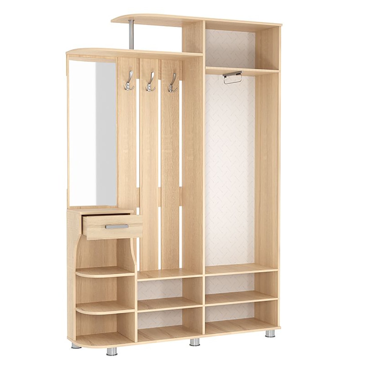 Прихожая Барселона-2: идеальное решение для максимизации пространства в вашей прихожей, объединяющее в себе все ключевые элементы для комфортного размещения одежды и аксессуаров.