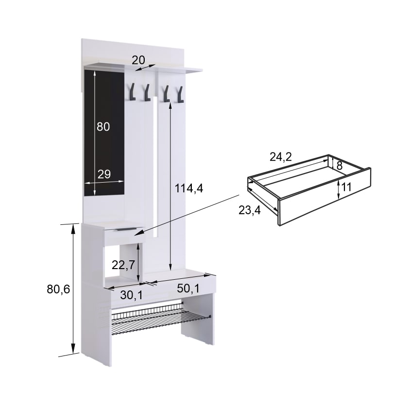Изготовленная из прочного ЛДСП толщиной 16 мм, прихожая "Баско" гарантирует долговечность и надежность.
