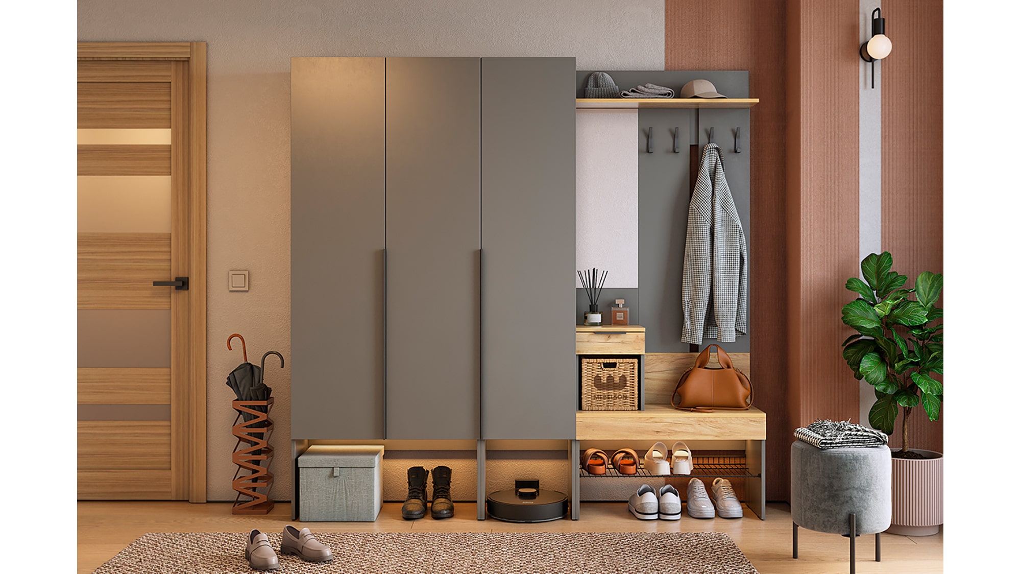Подсветка для шкафов и прихожей приобретается отдельно.