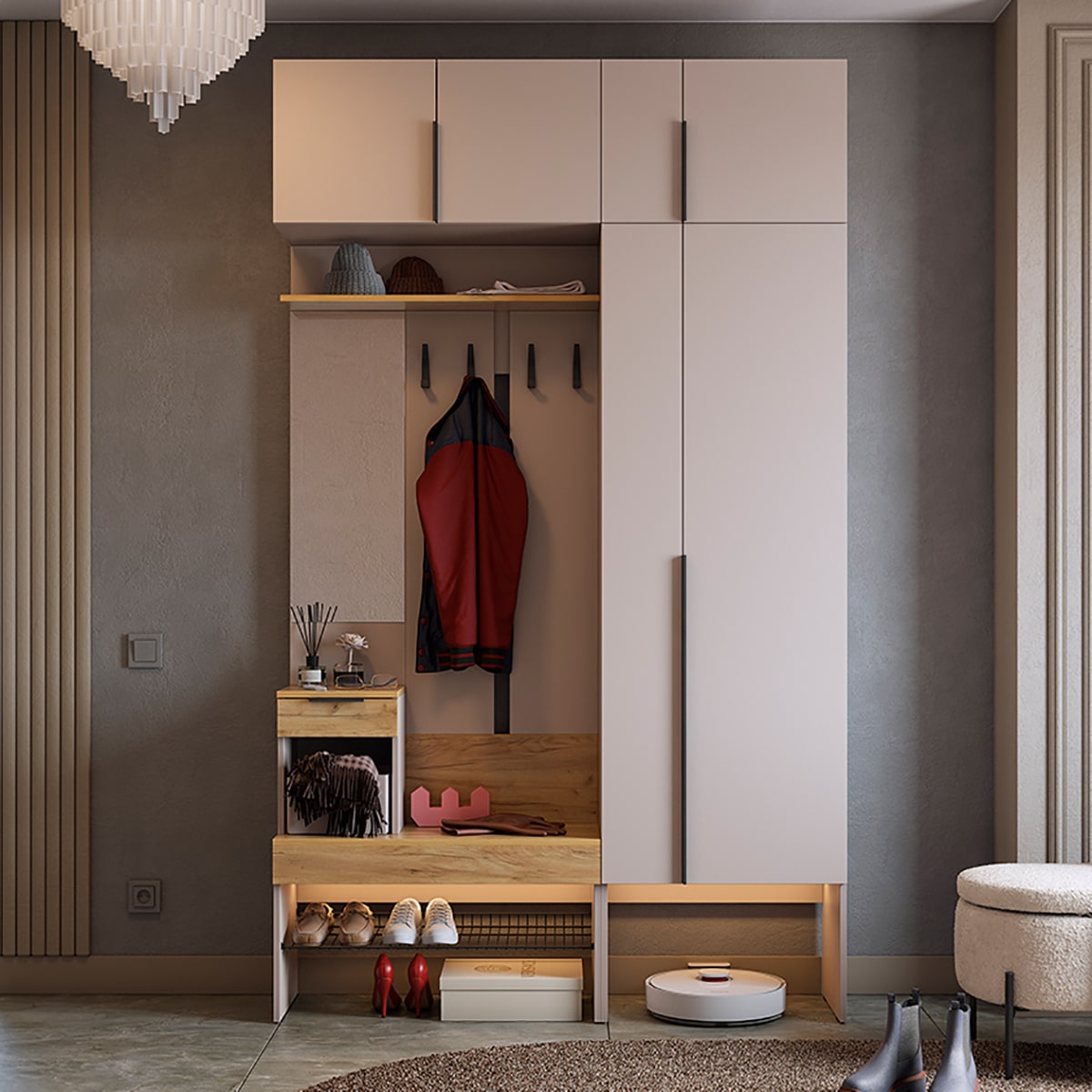 Подсветка для шкафа и прихожей приобретается отдельно.
