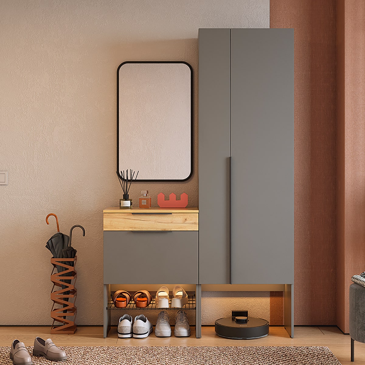 Подсветка для шкафа и прихожей приобретается отдельно.