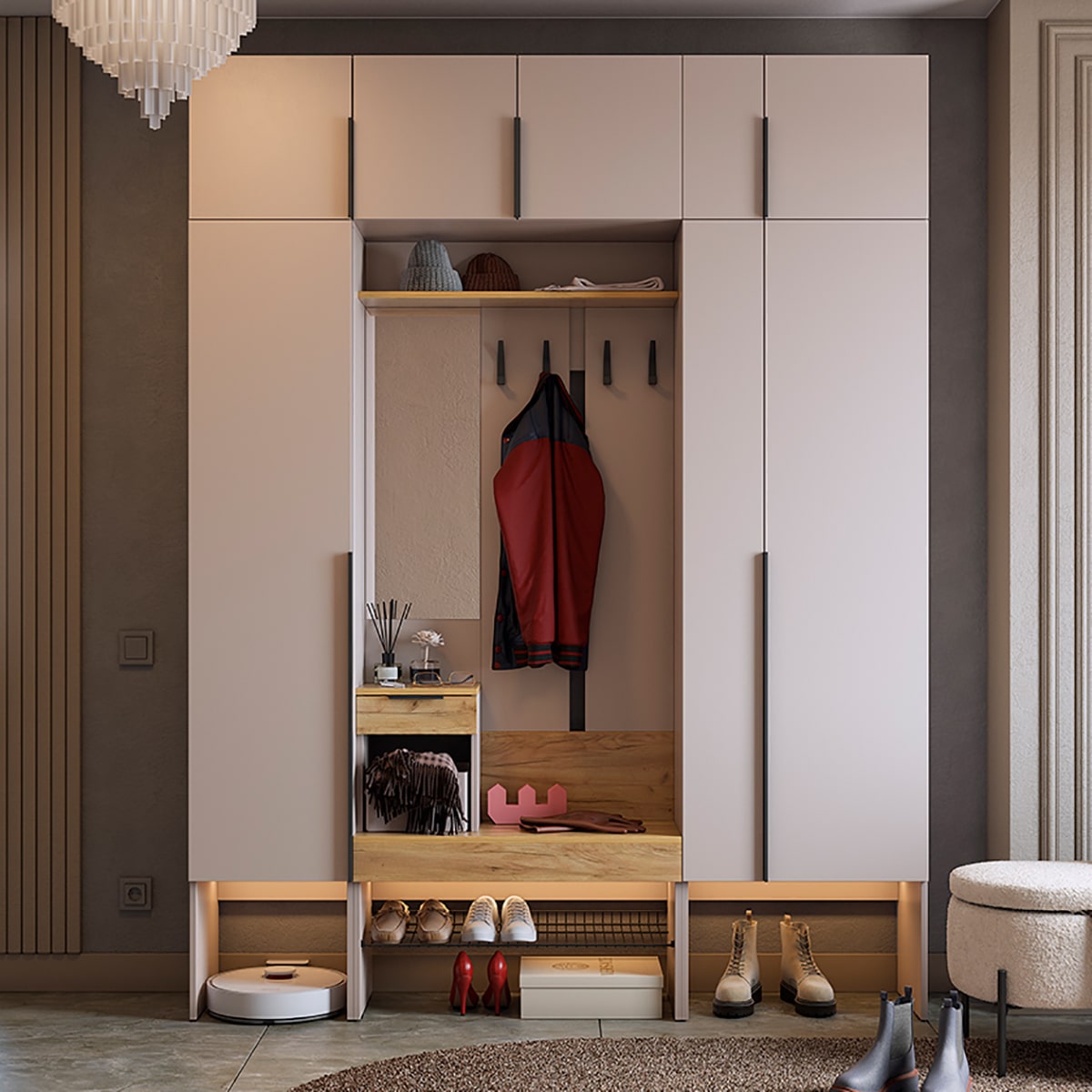 Подсветка для шкафа и прихожей приобретается отдельно.