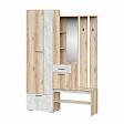 Изделие идеально впишется даже в малогабаритную прихожую, при этом включает в себя все необходимое:вместительный шкаф с выдвижной штангой, зеркало, тумба с выдвижным ящиком и распашной створкой, вешалка с крючками для одежды, полки для головных уборов и для обуви.