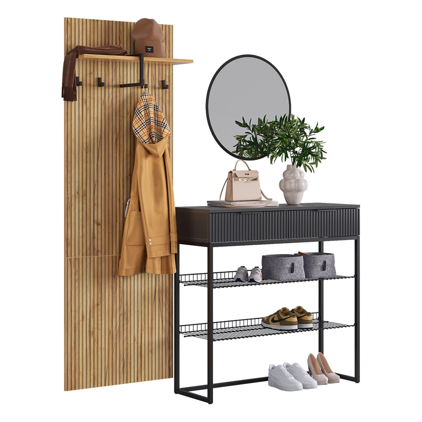 В комплект прихожей входят следующие позиции: Вешалка 1 Бодрум - 1 шт. Обувница Классная 1 - 1 шт. Зеркало Фортуна 1 - 1 шт.