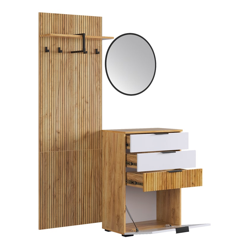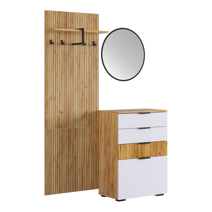 В комплект прихожей входят следующие позиции: Вешалка 1 Бодрум - 1 шт. Бери Комод - 1 шт. Зеркало Фортуна 1 - 1 шт.