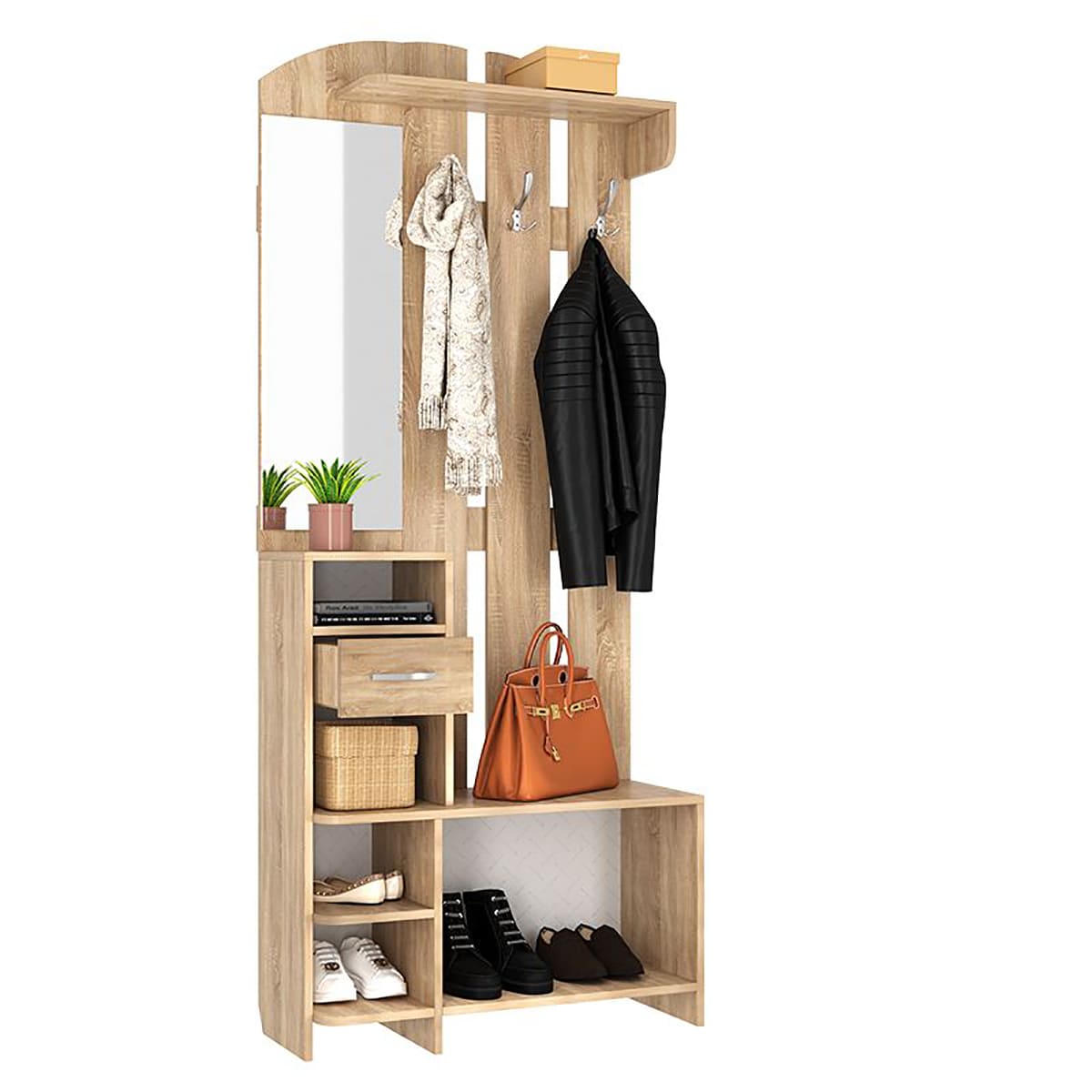 Прихожая Мила идеально подходит для тех, кто ценит компактность, но при этом хочет максимально эффективно использовать пространство. Она обеспечивает удобное размещение одежды, обуви и аксессуаров.