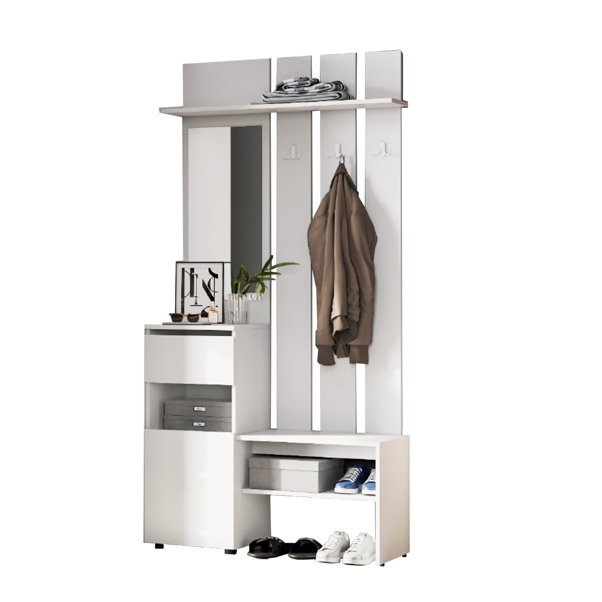 Максимальная нагрузка: 5 кг на полки, 10 кг на крышки, 10 кг на крючки.