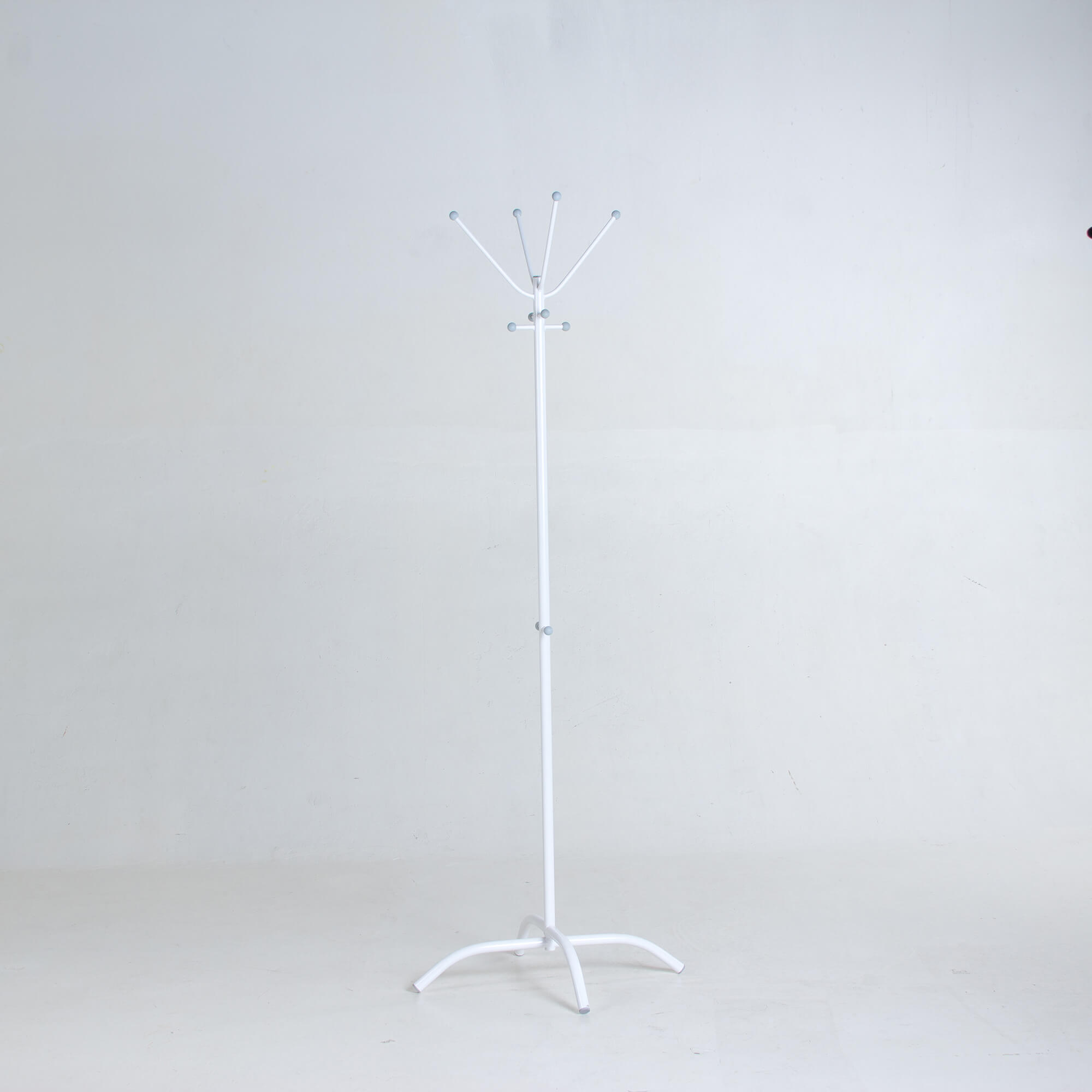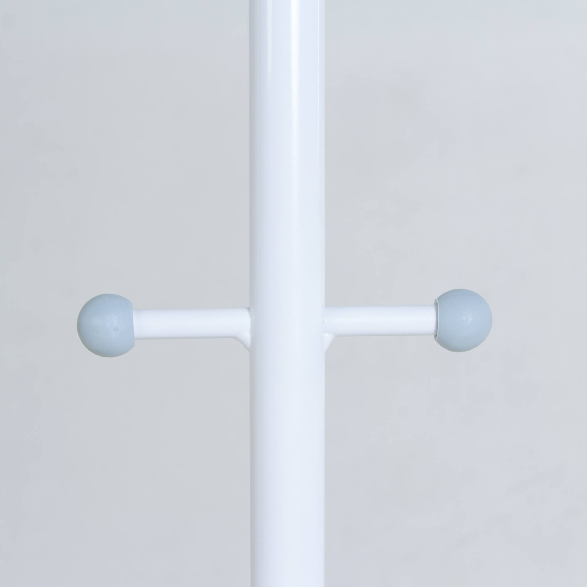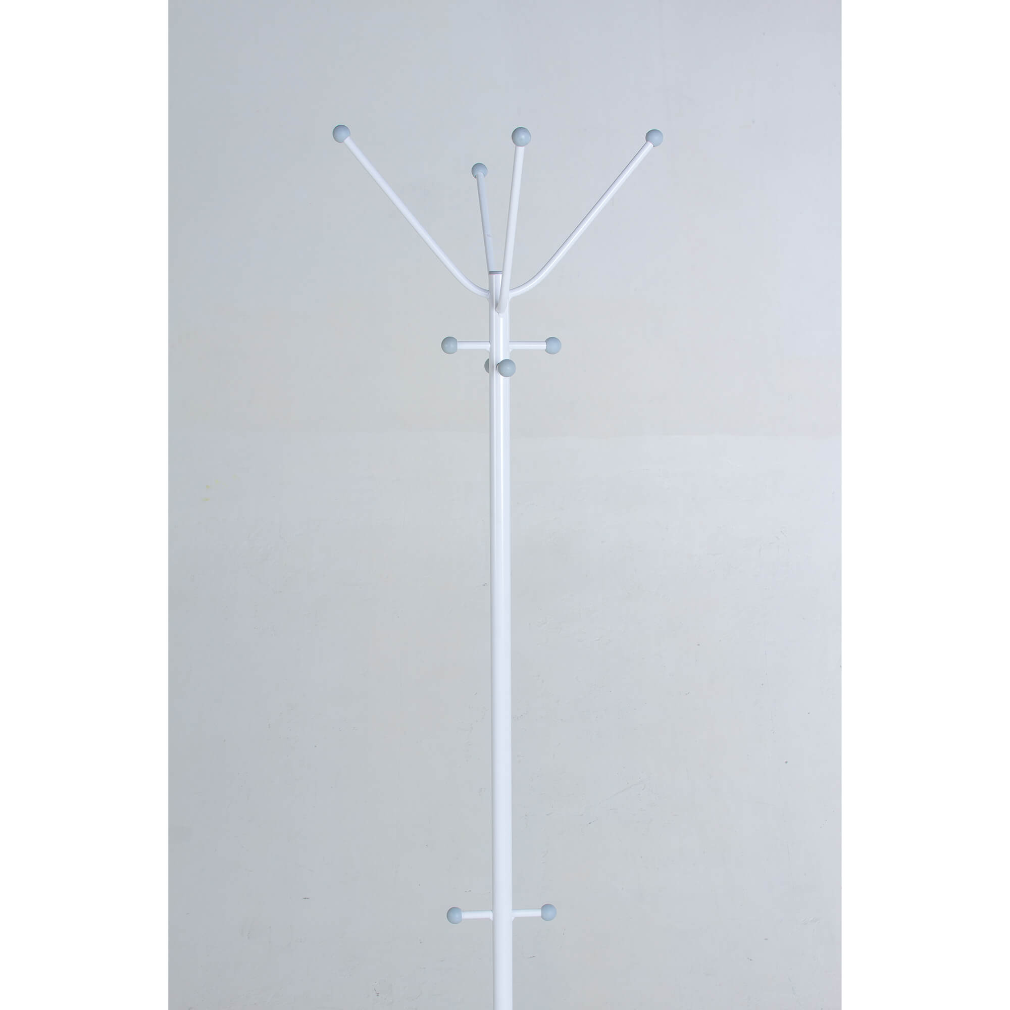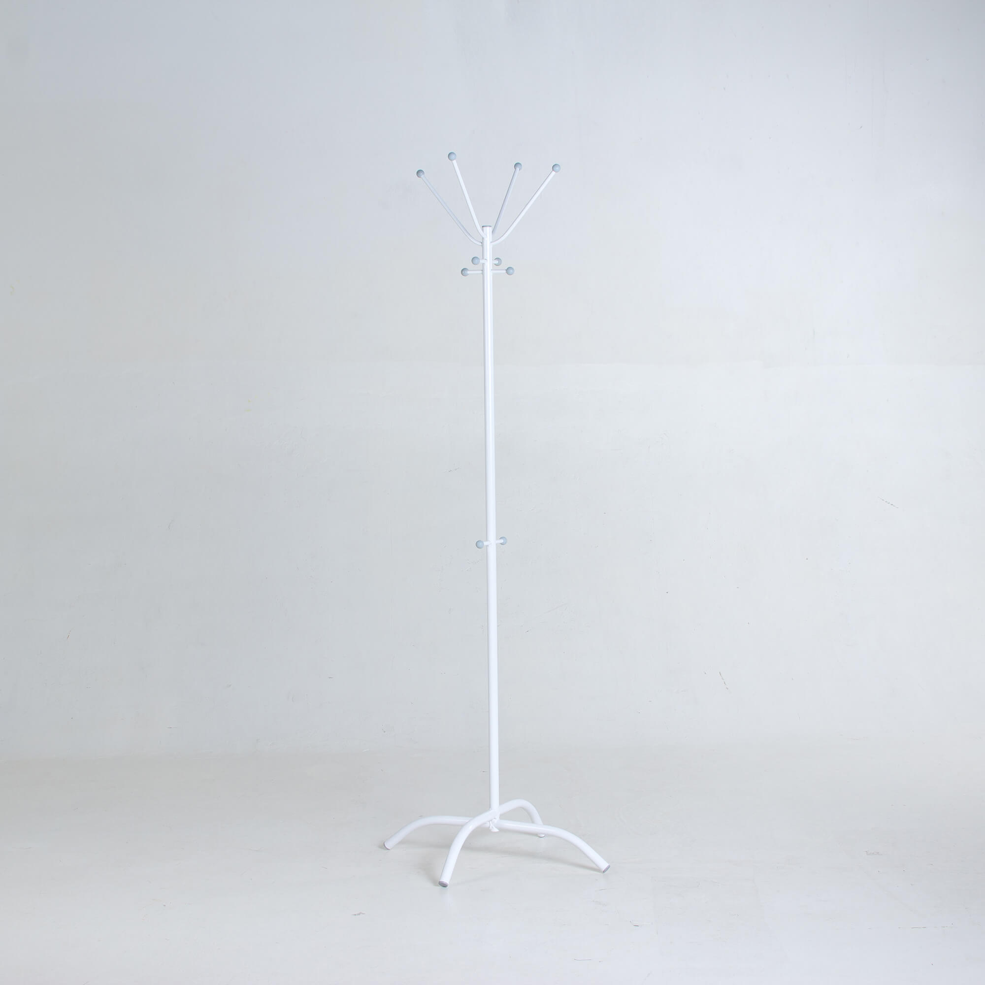 Классическая напольная офисная вешалка с четырьмя крючками для верхней одежды и столько же для головных уборов.