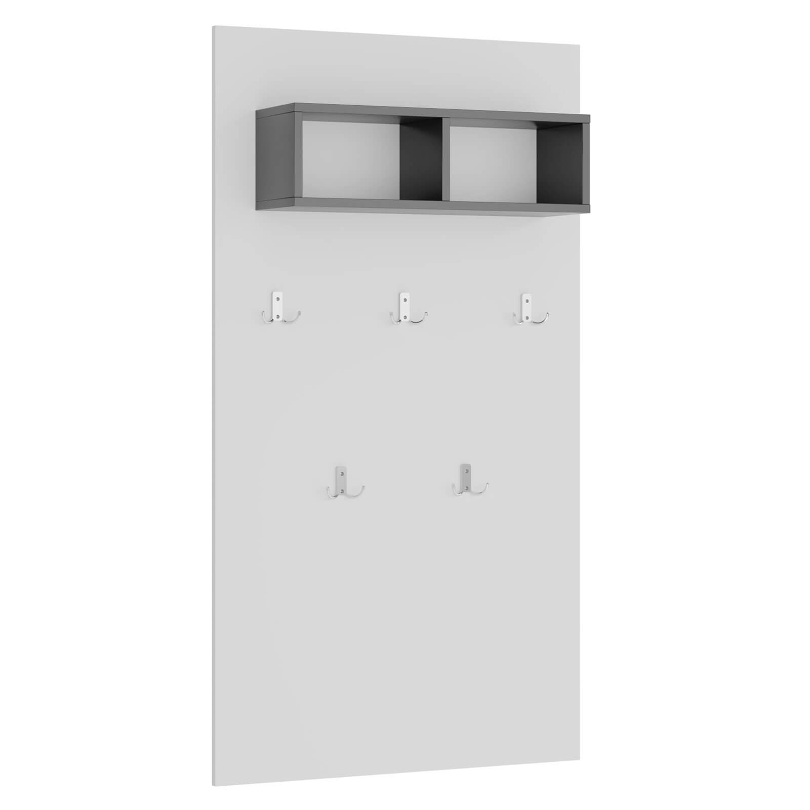 Вешалка оснащена пятью крючками для одежды и одной полкой, что позволяет удобно разместить верхнюю одежду и аксессуары. Материал изготовления – ЛДСП, который отличается прочностью и долговечностью.