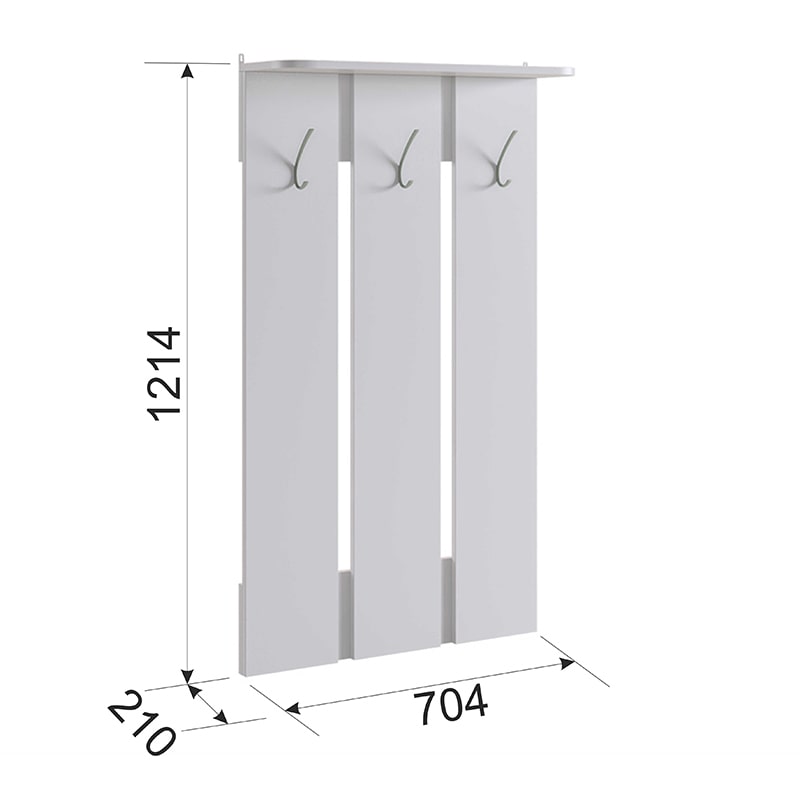 Вешалка Реал 1 - это прекрасное решение для малогабаритных пространств. Отсутствие избыточных деталей и симметричный дизайн делают ее универсальной и адаптируемой к любому интерьеру. На вешалке предусмотрены металлические крючки, которые идеально подойдут для размещения верхней одежды и сумок. Полка сверху предназначена для удобного хранения головных уборов.