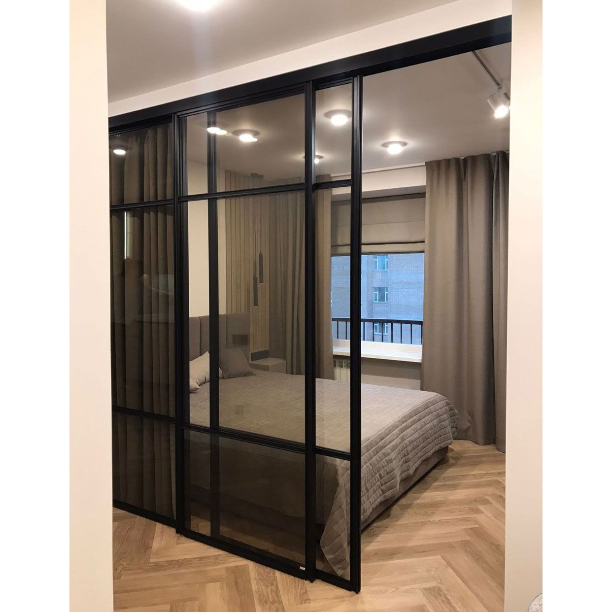 Раздвижные перегородки в проем 2700х2500 стекло графит