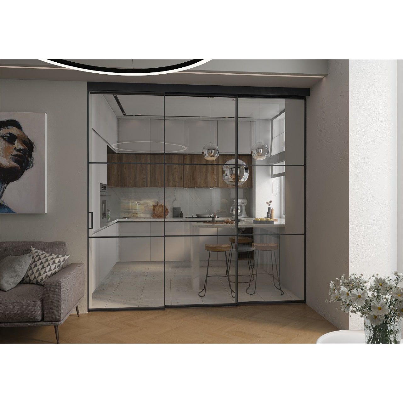Раздвижные перегородки в проем Грейс 3 двери 2200х2500 мм черный/стекло графит
