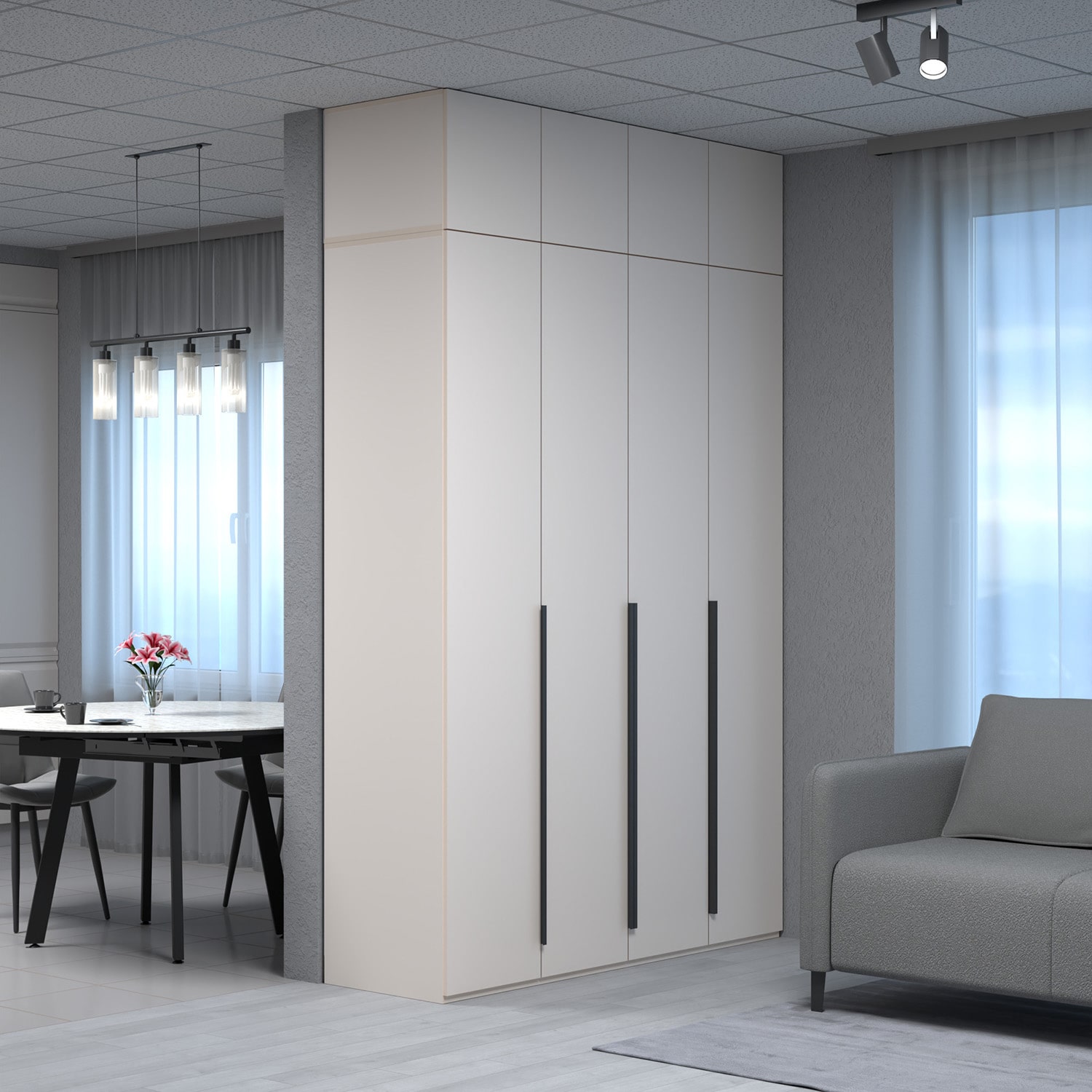 Практичное решение, подходящее для хранения одежды в спальне и гаджетов в гостиной. Удобная система открытия Push to Open, которая позволяет открывать и закрывать дверки одним нажатием. Универсальный, и поэтому самый востребованный, бежевый цвет одинаково хорошо подойдет как в спальне, так и в гостиной, домашнем офисе или холле.