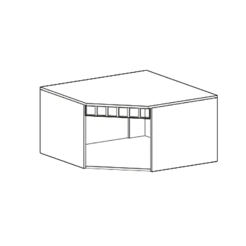 Антресоль угловая - глубина 910 мм, ширина 910 мм, высота 480 мм. За распашной дверью расположена ниша для вещей. Дверь монтируется на любую сторону антресоли. Антресоль ставится на угловой шкаф и крепится к нему межсекционными стяжками.