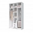 Шкаф оснащен тремя распашными дверцами, за которыми находятся пять полок. Это позволяет удобно разместить длинные платья, зимнюю одежду и другие вещи. Внутри также предусмотрена штанга для вешалок, что делает шкаф еще более вместительным.