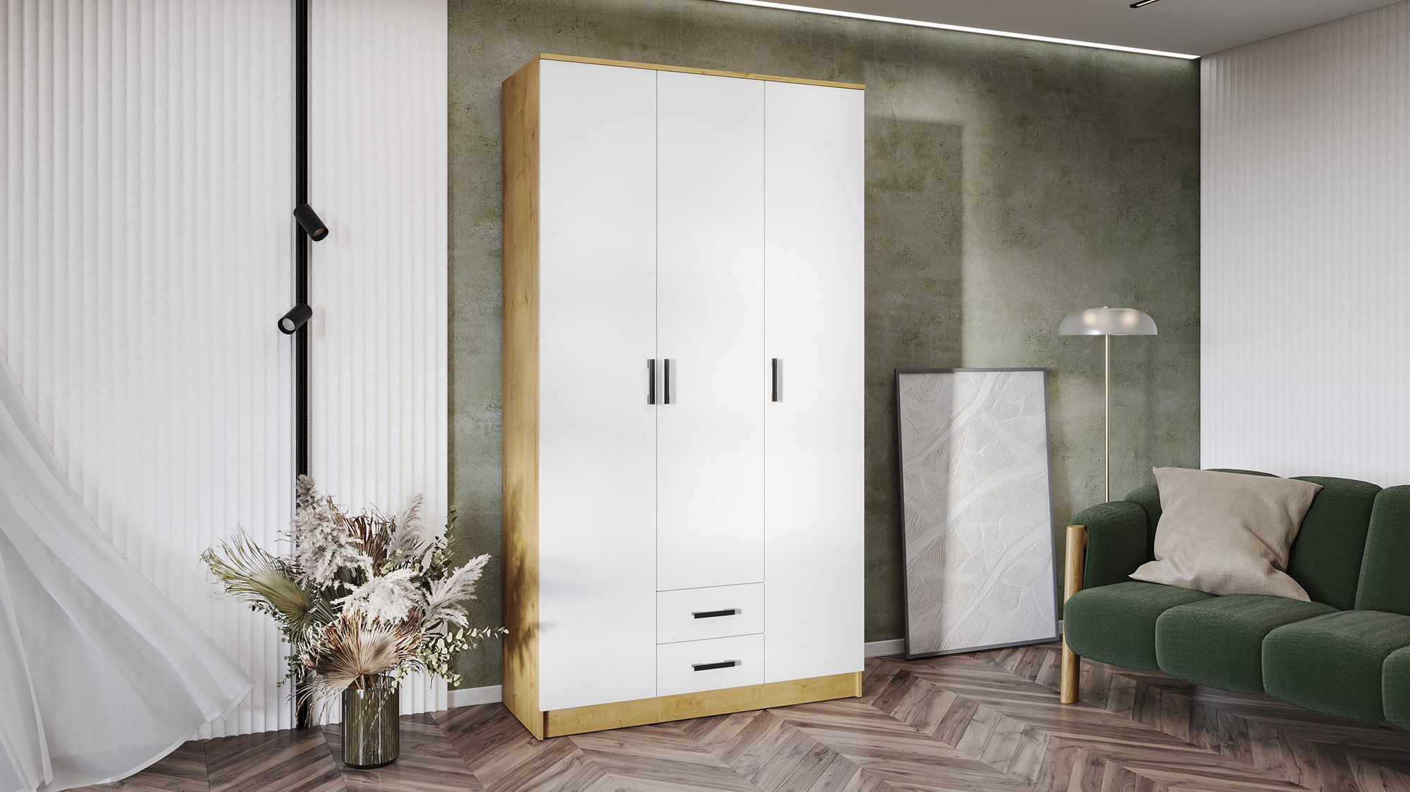 Шкаф ЭРА ТРИО Дуб вотан/белый гладкий - это современное и функциональное решение для хранения одежды и мелких предметов в вашем доме.