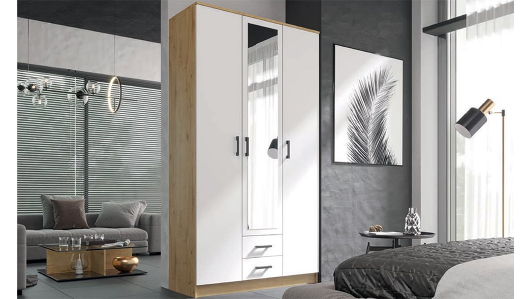 Шкаф ЭРА ТРИО Дуб вотан/белый гладкий - это современное и функциональное решение для хранения одежды и мелких предметов в вашем доме.